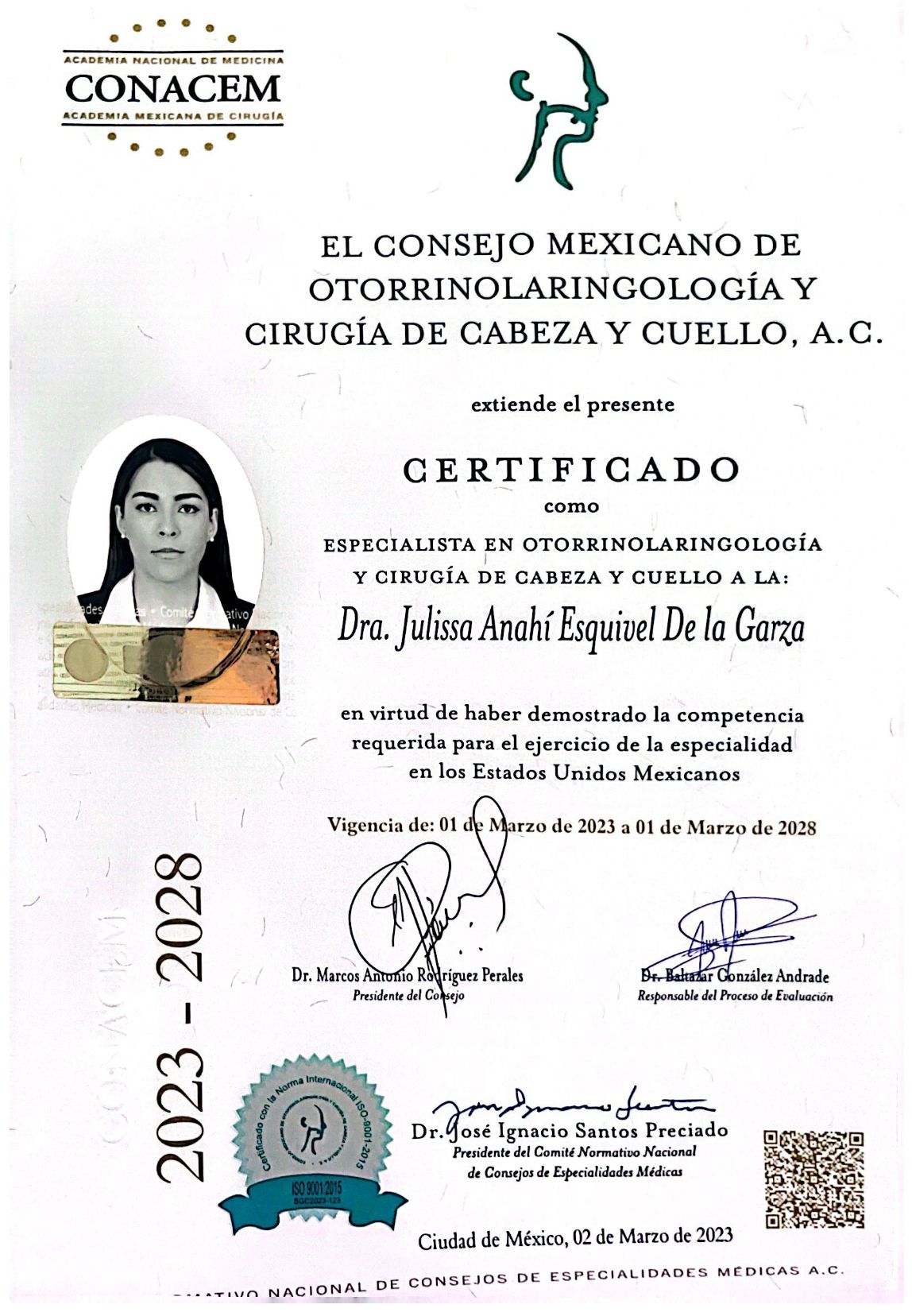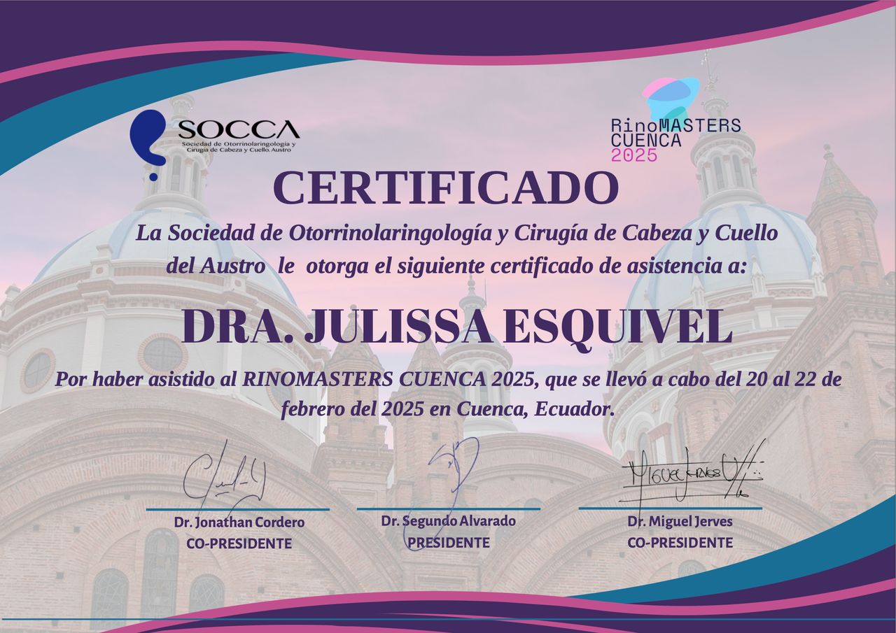Soy la Dra. Julissa Esquivel, otorrinolaringóloga y cirujana de cabeza y cuello, avalada por la Universidad Autónoma de México y el Consejo Mexicano de Otorrinolaringología.