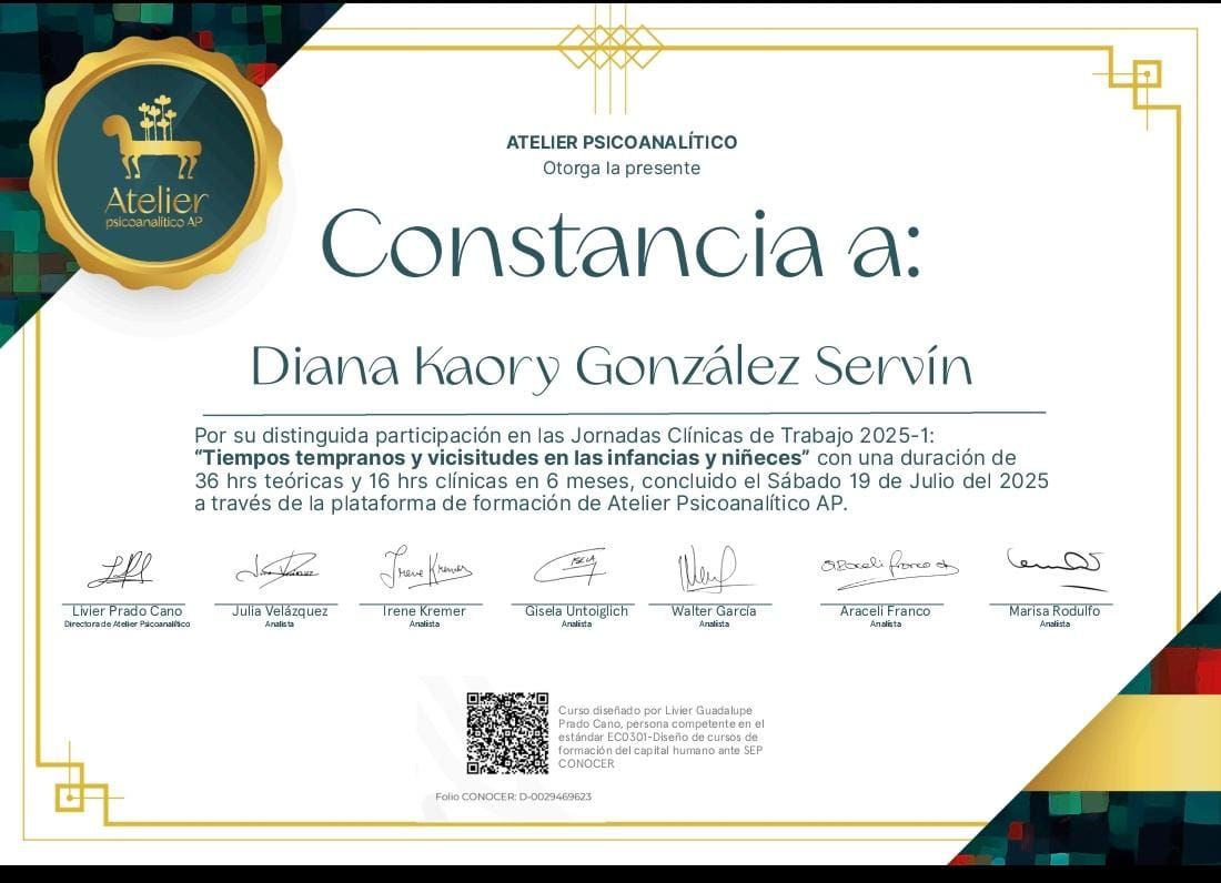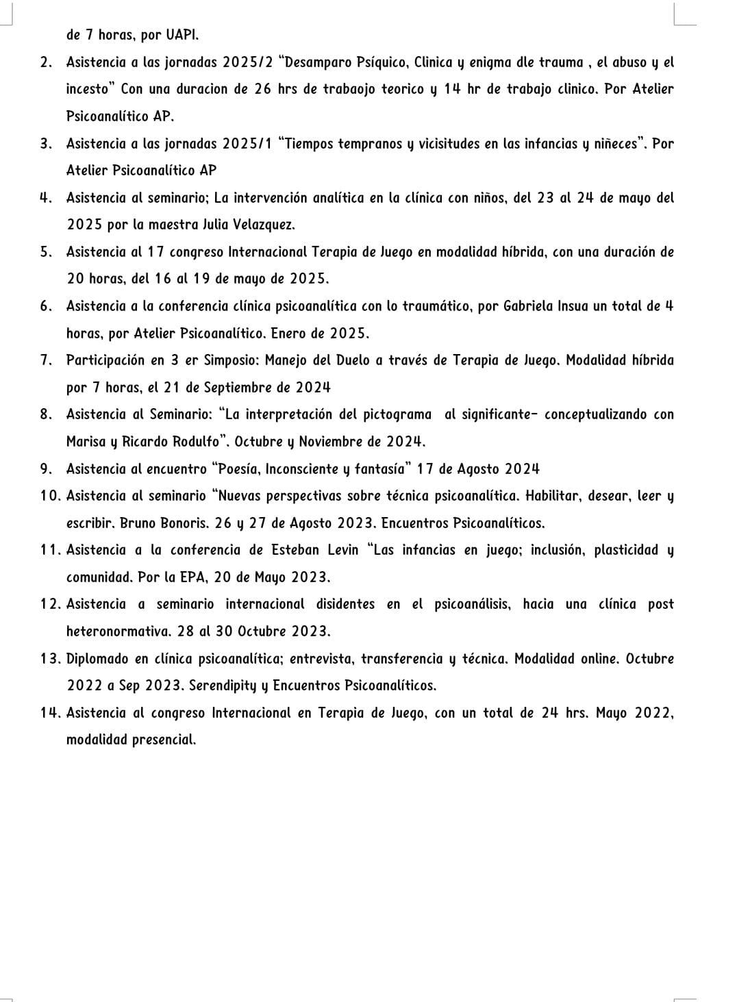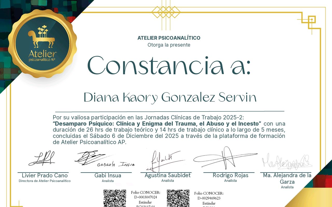En el año pasado mi formacion académica siguió en pie y pude formarme con atelier psicoanalítico donde pude aprender mucho y enriquecer mu formación teorica y clinica.