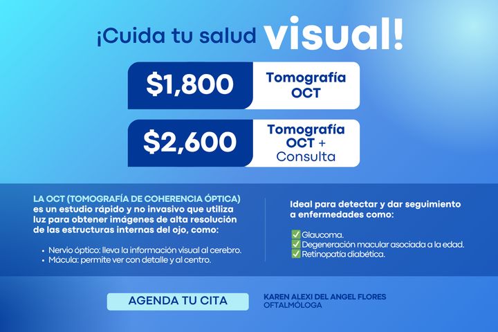Soy cirujana oftalmóloga con alta especialidad en glaucoma. También trato ojo seco, chalazión, cataratas, degeneración macular, retinopatía diabética y realizo cirugía láser para corrección de miopía.