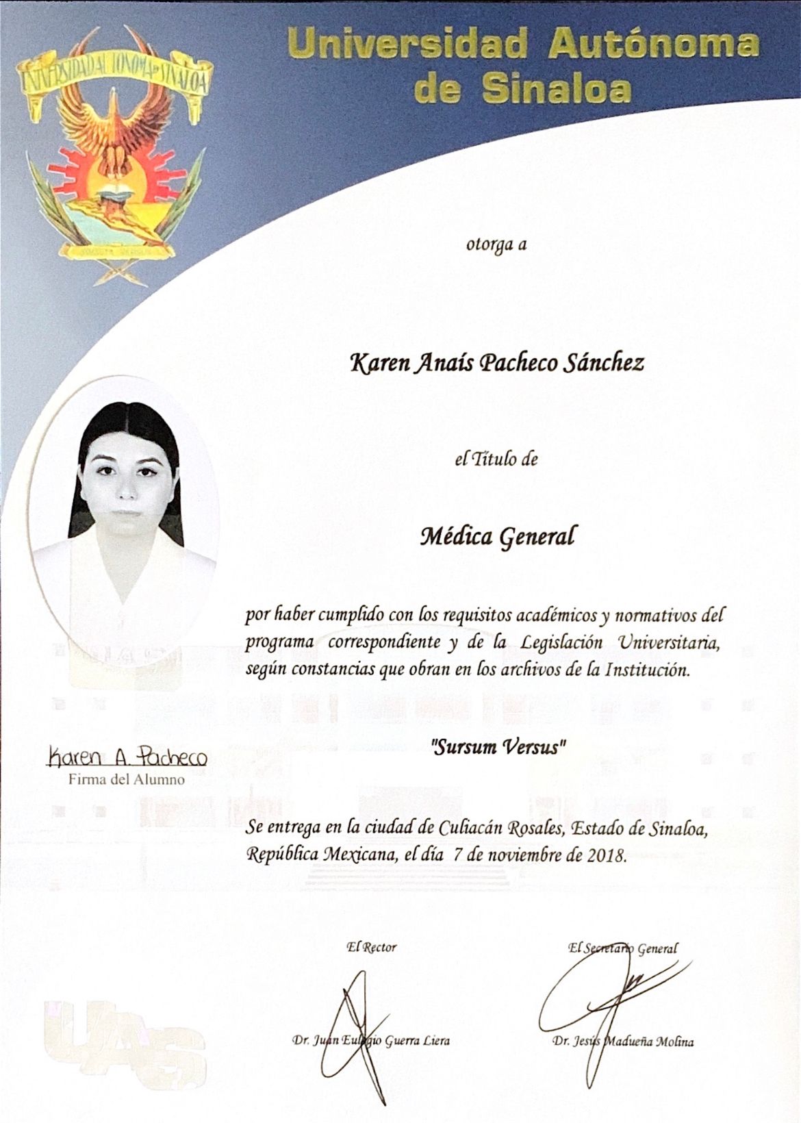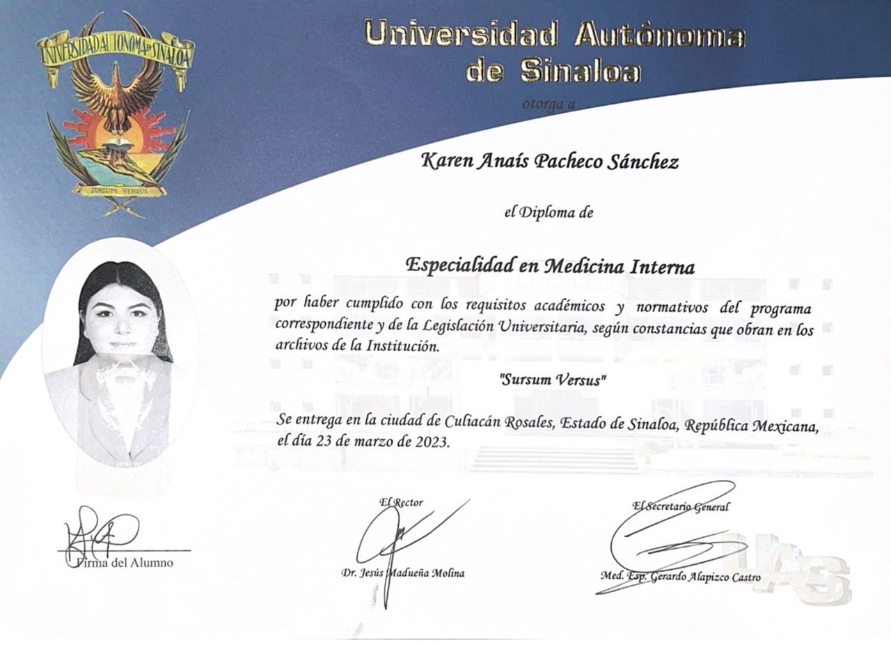 Realicé mis estudios de Medicina General en la Universidad Autónoma de Sinaloa y mi especialidad en Medicina Interna en CIDOCS-UAS.