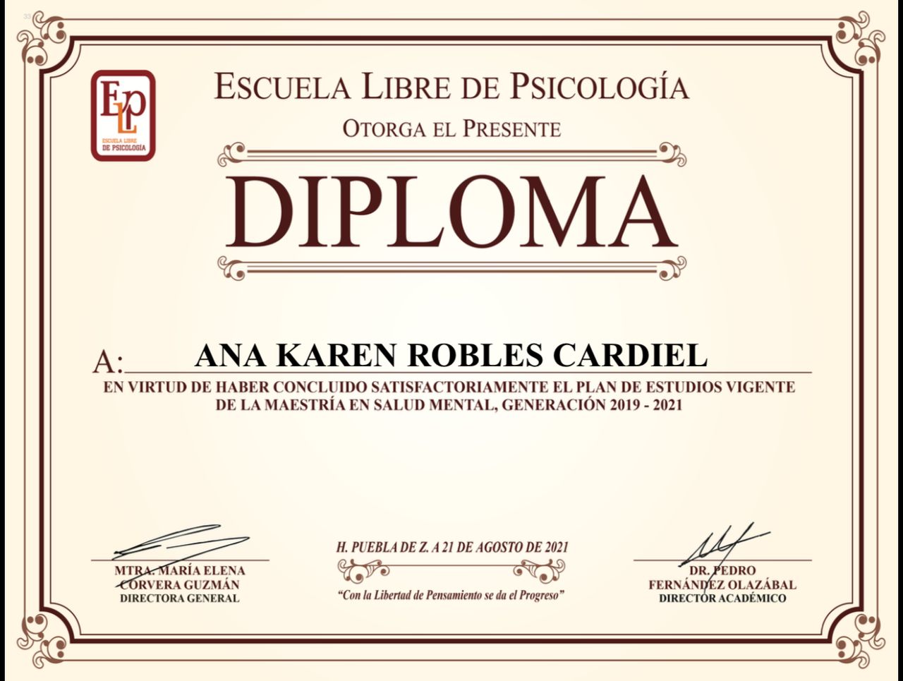 Soy psicóloga con maestría en salud mental.