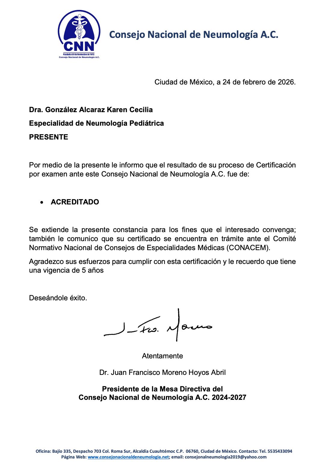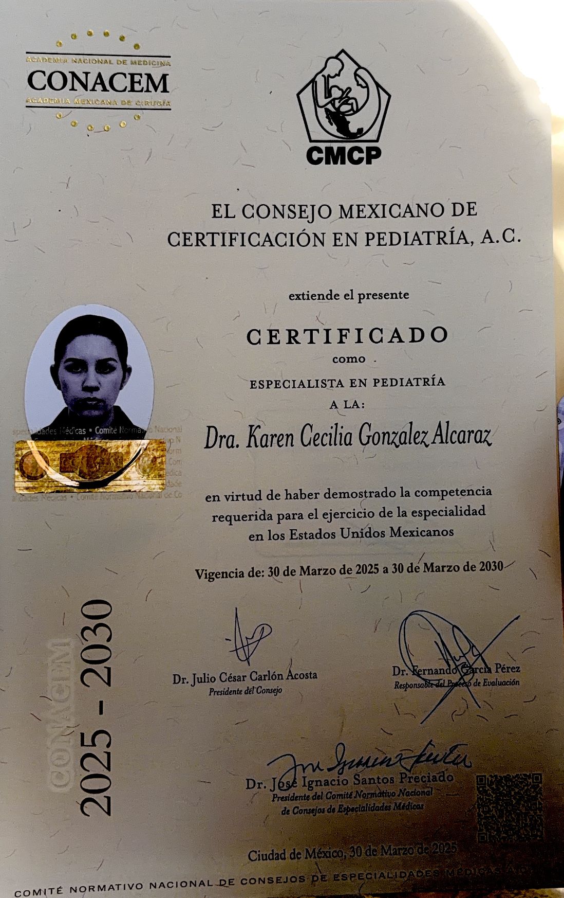 Y recientemente egresé de la subespecialidad en Neumología Pediátrica en el Instituto Nacional de Pediatría.