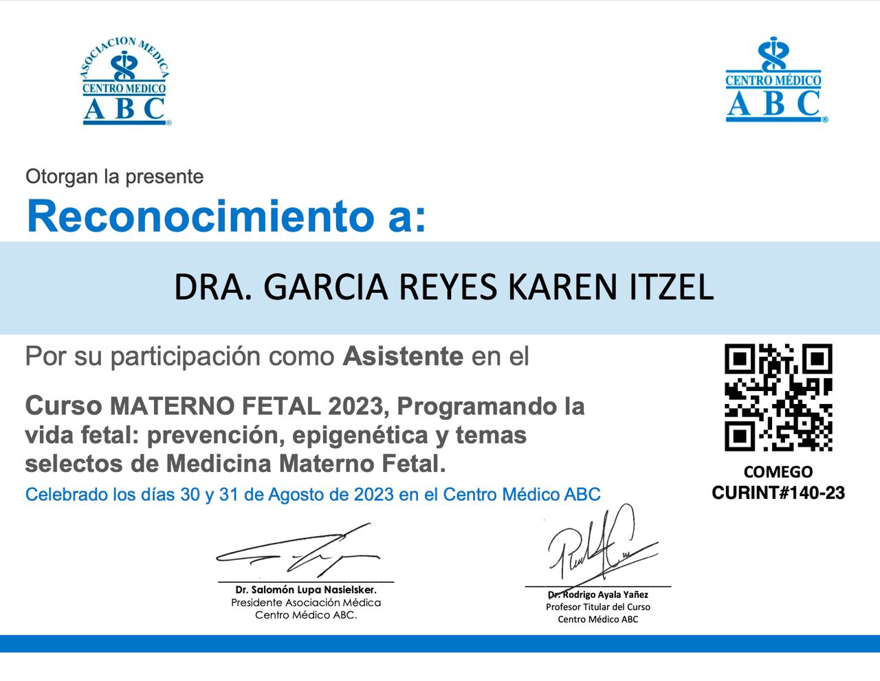 Además, realicé el Máster en Menopausia por el Instituto Nacional de Perinatología, fortaleciendo mi enfoque en salud hormonal, climaterio y bienestar integral de la mujer en esta etapa.