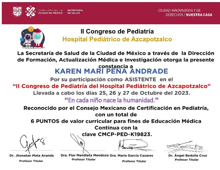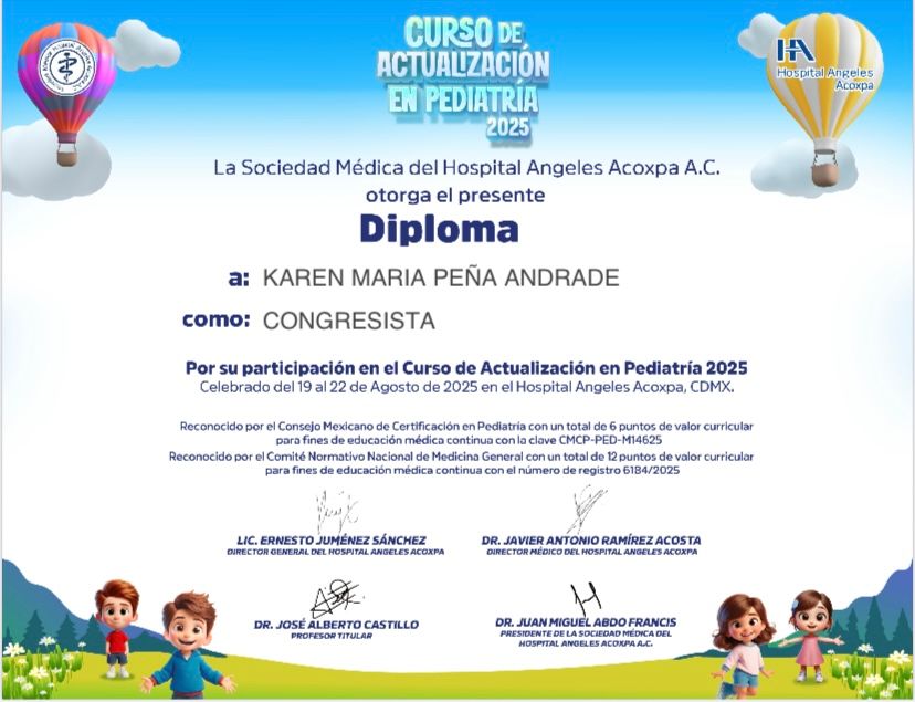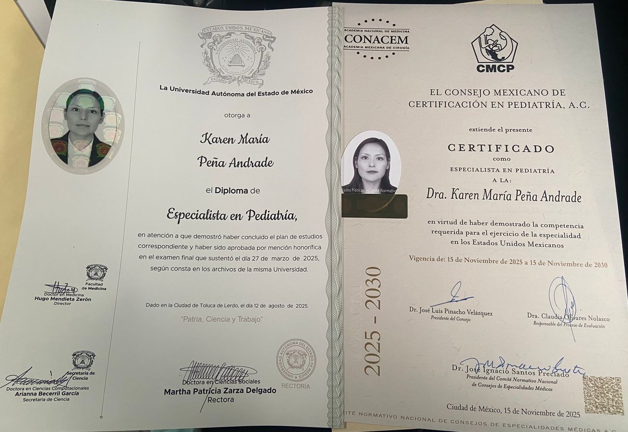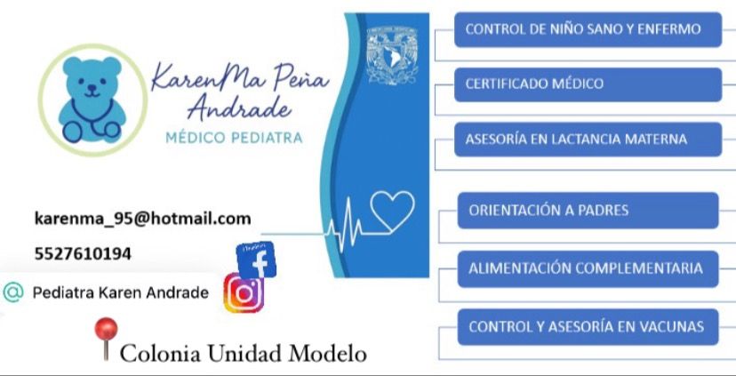25 opinionesHola soy la Doctora Karen!! Me da gusto conocerte me presento, soy médico pediatra egresada de la Lic. Médico Cirujano en la UNAM CU Facmed, especialista en pediatría egresada de la UAMEX SSA, Certificada por el Consejo Nacional de Pediatría, Médico Adscrito de Pediatría SSA CDMX y doy consulta privada