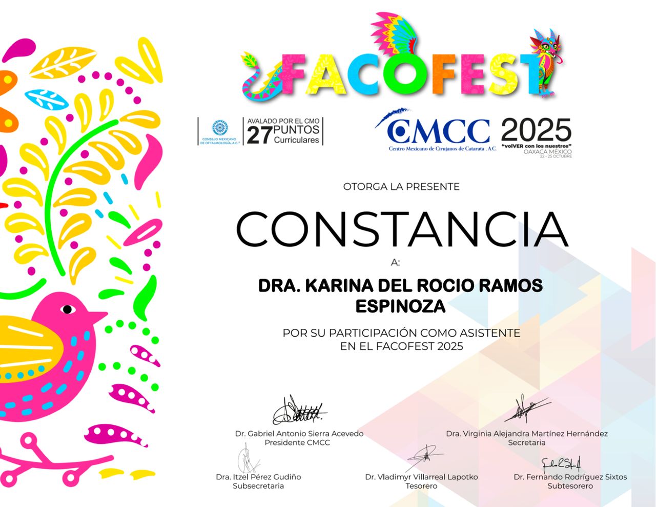 Me mantengo en constante actualización para ofrecer los tratamientos más modernos y seguros en cirugía refractiva con láser, cirugía oftalmológica, cataratas y microcirugía de segmento anterior