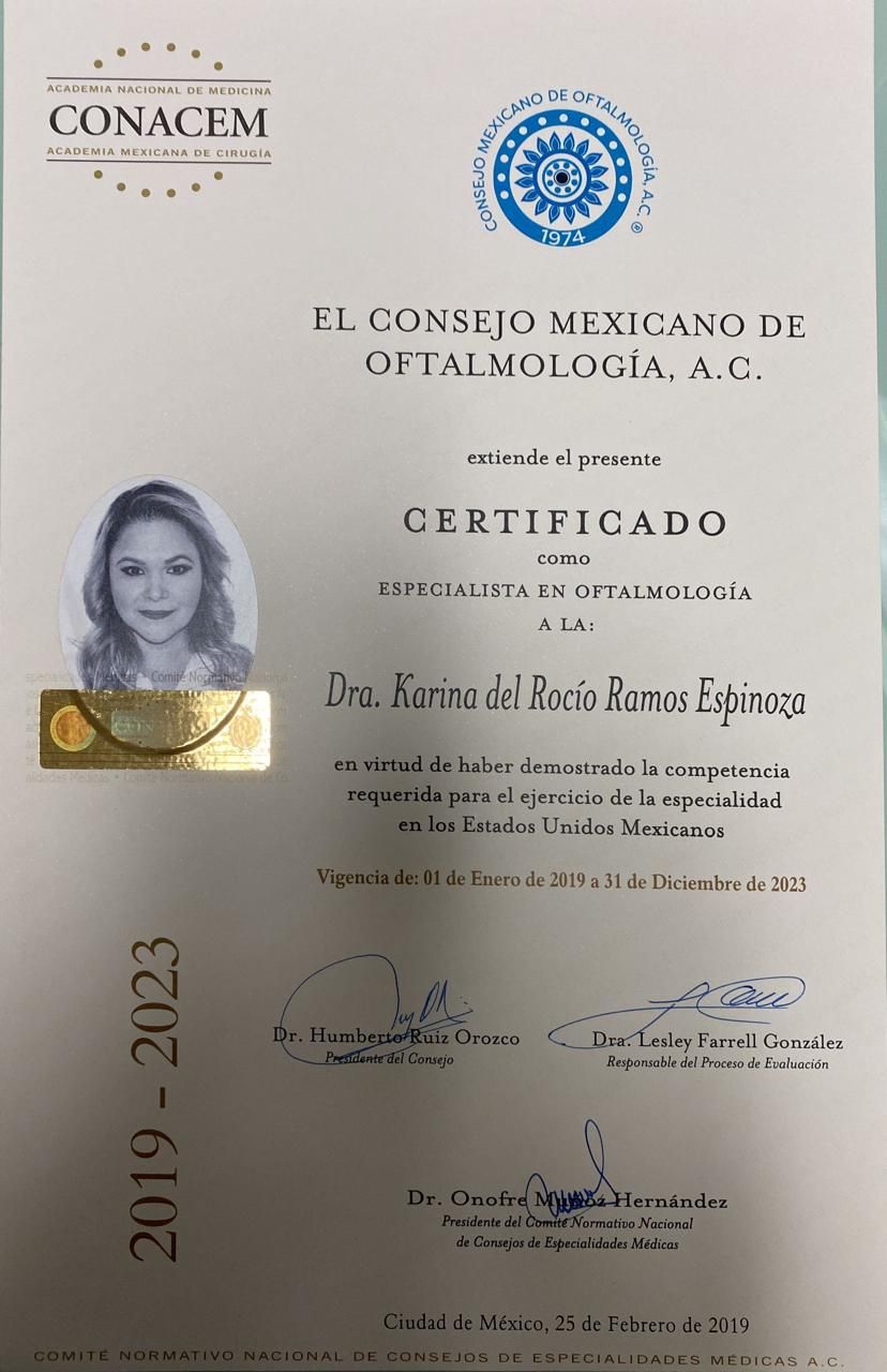 Soy la Dra. Karina oftalmóloga con más de 20 años dedicados al cuidado de la salud visual. A lo largo de mi trayectoria he ayudado a miles de pacientes a mejorar su visión y su calidad de vida, siempre con un trato cálido, profesional y personalizado.