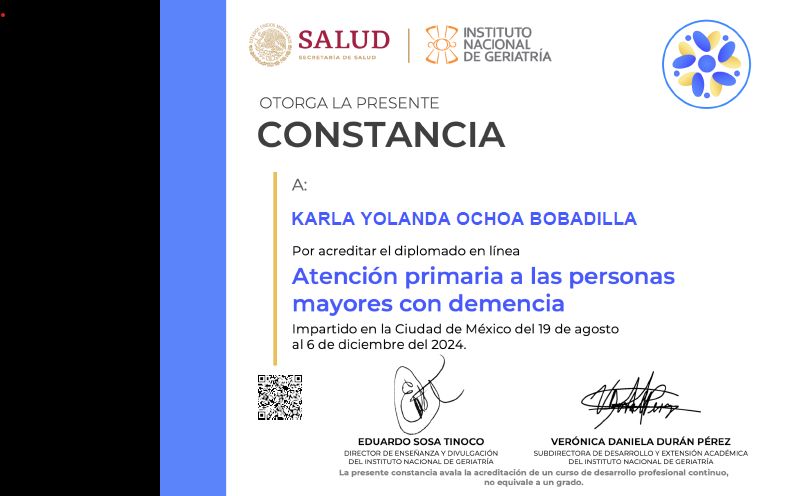 • Unidad de especialidades médicas/ Consultorio Dra. Karla Ochoa • Primera visita Geriatría y Gerontología •