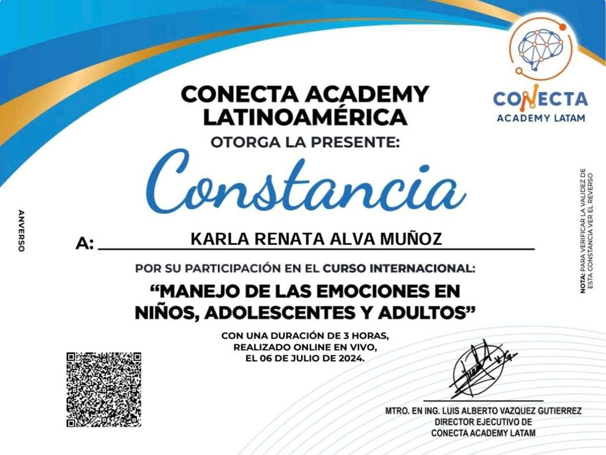 Soy psicóloga con formación en gestión emocional, tanatología, estimulación temprana, terapia de lenguaje, terapia de juego, entre otras.