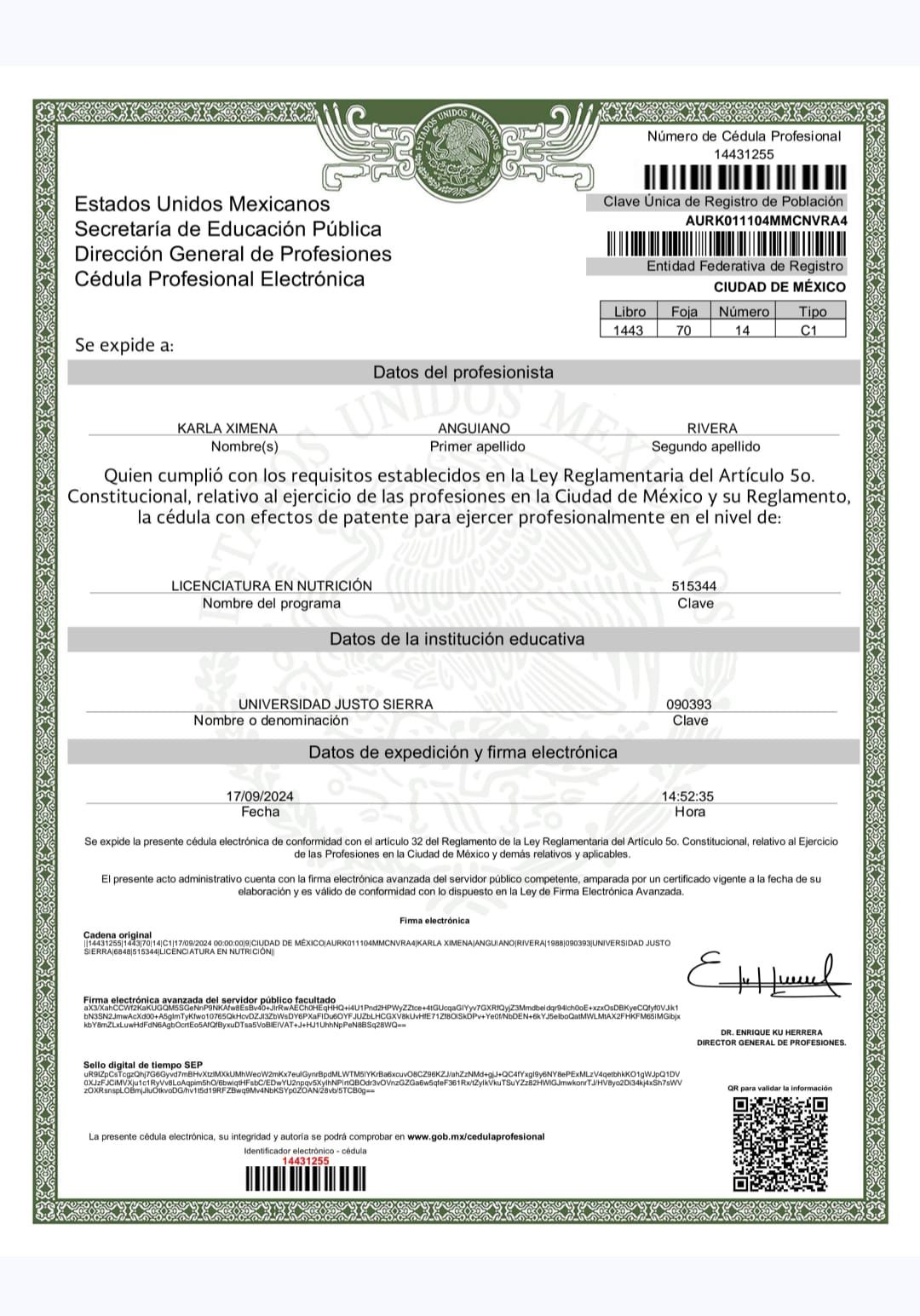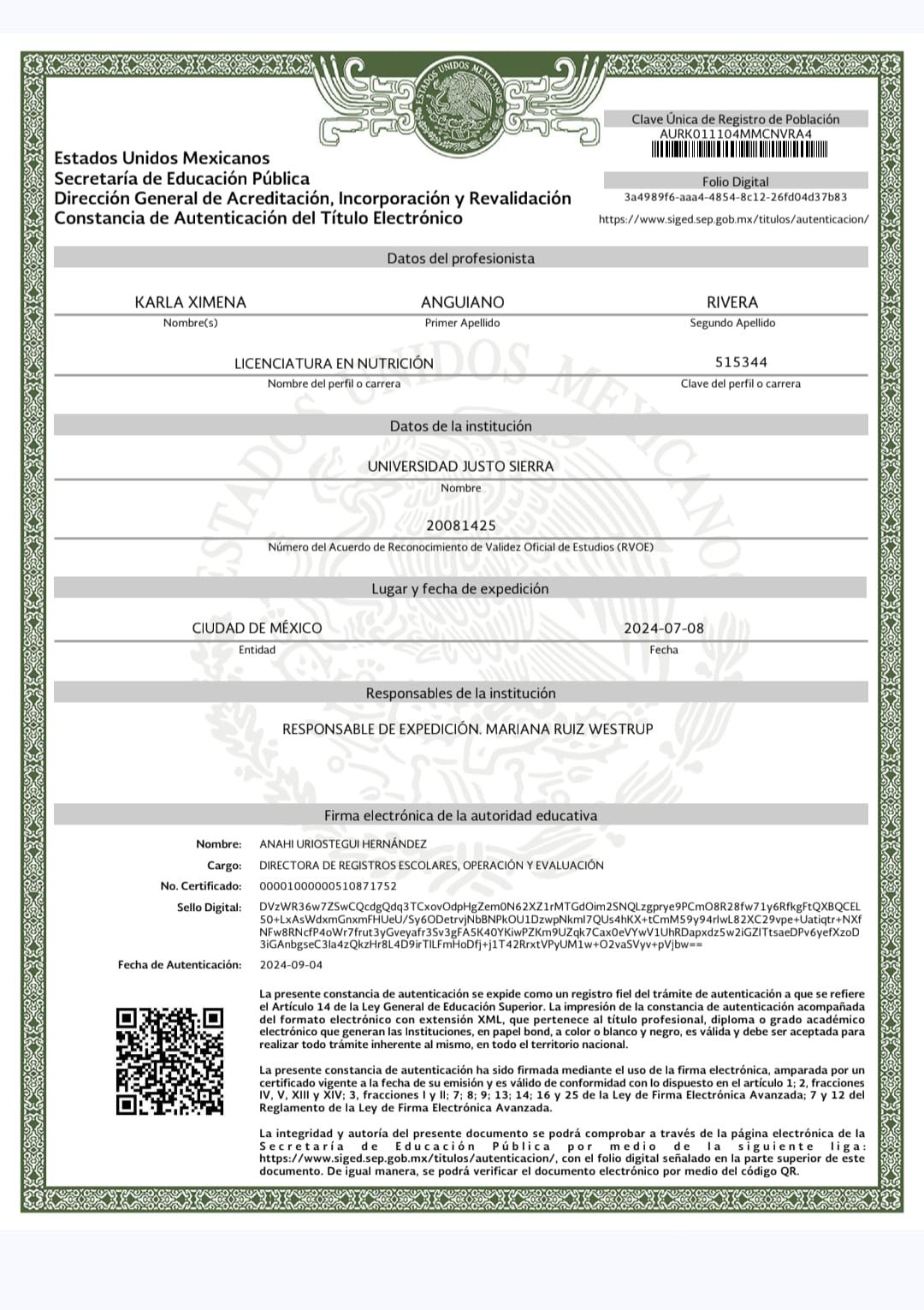 Hola mucho gusto!, Soy karla, tu nutrióloga enfocada en ayudarte a mejorar tu salud de manera integral y sostenible, sin dietas extremas ni restricciones innecesarias. A lo largo de mi práctica he trabajado principalmente con pacientes que buscan mejorar su salud hormonal, su composición corporal ya que cuento con certificación en entrenamiento Muscular,certificación en resistencia a la insulina, prediabetes, diabetes, certificación en salud digestiva y relación con la comida, siempre desde un enfoque basado en evidencia científica y adaptado a su estilo de vida.