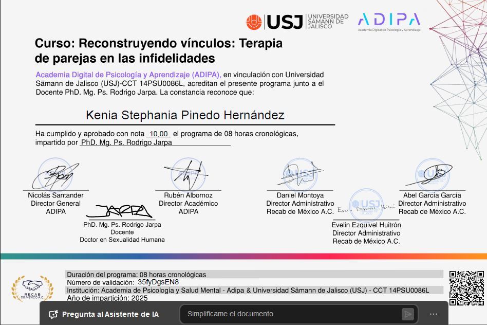 Diplomados especializados en Tanatología, Terapia de Pareja y Manejo de Violencia.