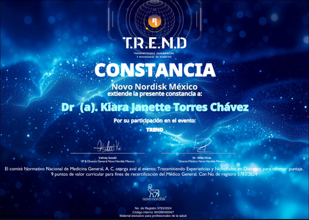 Soy la Dra Kiara Torres, médico Diabetólogo, especialista en control de enfermedades metabólicas.