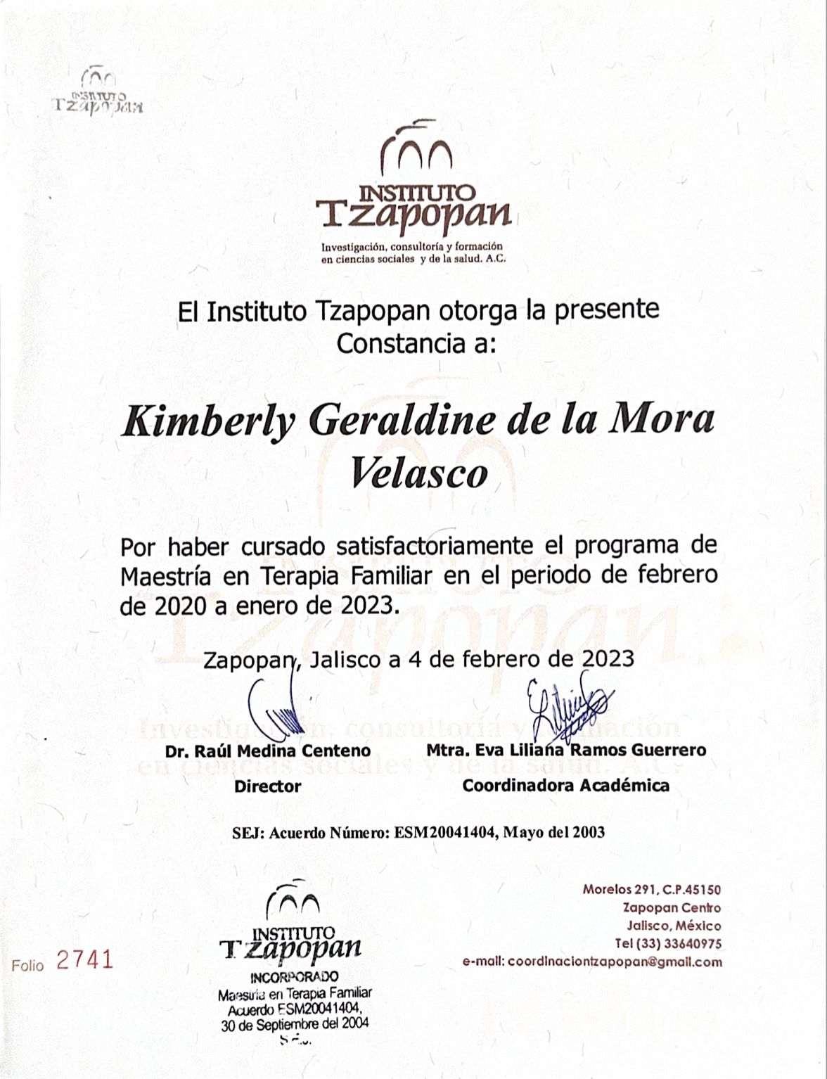 • MTF. Kimberly De la Mora Velasco • Psicoterapia •