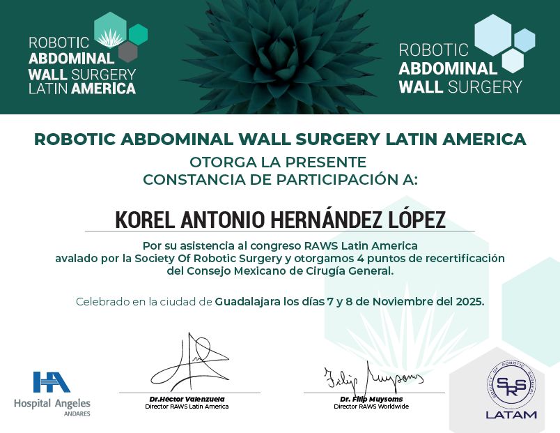 Soy Cirujano General con enfoque en cirugía de mínima invasión, comprometido con brindar una atención médica integral y humana. Mi prioridad es ofrecer tratamientos seguros, eficaces y personalizados, buscando siempre la mejor recuperación y calidad de vida para mis pacientes.