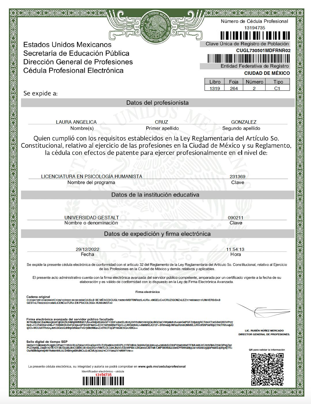 El número de registro profesional garantiza tu seguridad. Los profesionales de la salud deben contar con un cédula profesional para sus especialidades. Si no encuentras el registro del profesional, puedes consultarlo aquí: cedulaprofesional.sep.gob.mx
