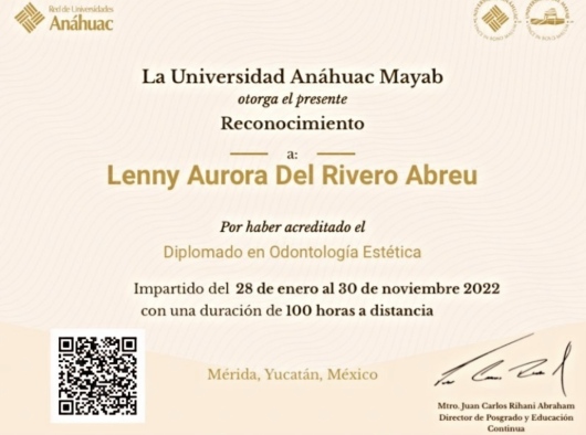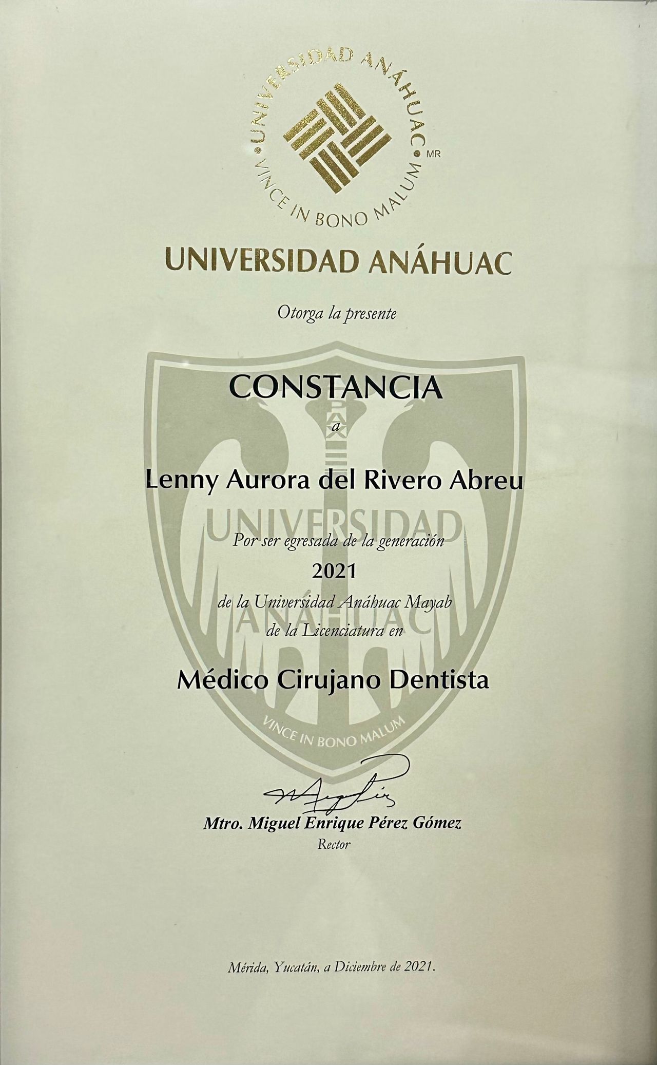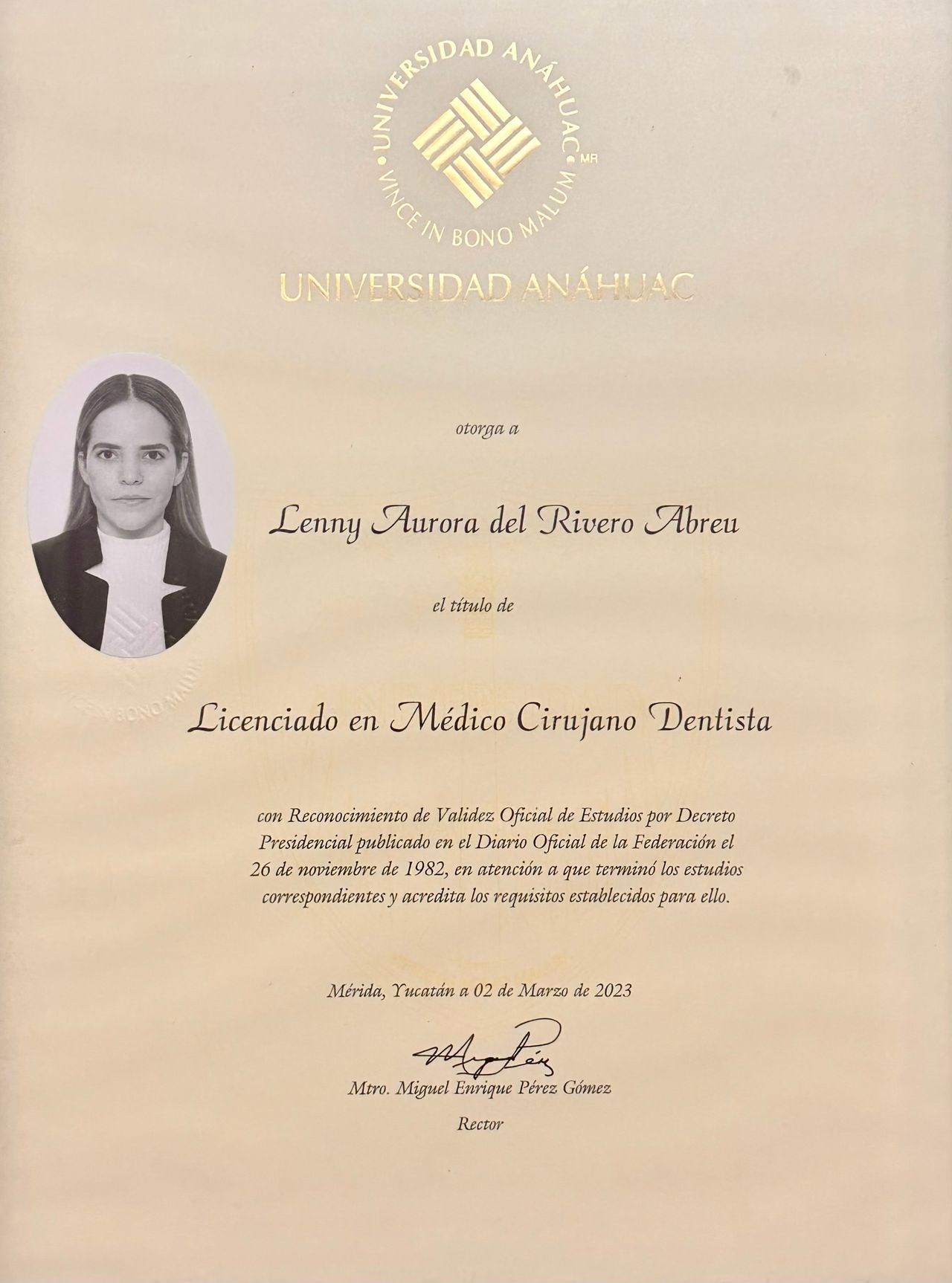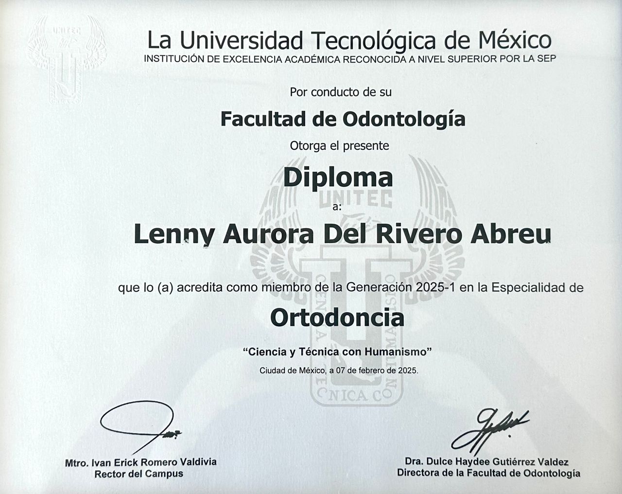 Soy Médico Cirujano Dentista egresada de la Universidad Anáhuac Mayab y Especialista en Ortodoncia y Ortopedia por la Universidad Tecnológica de México.