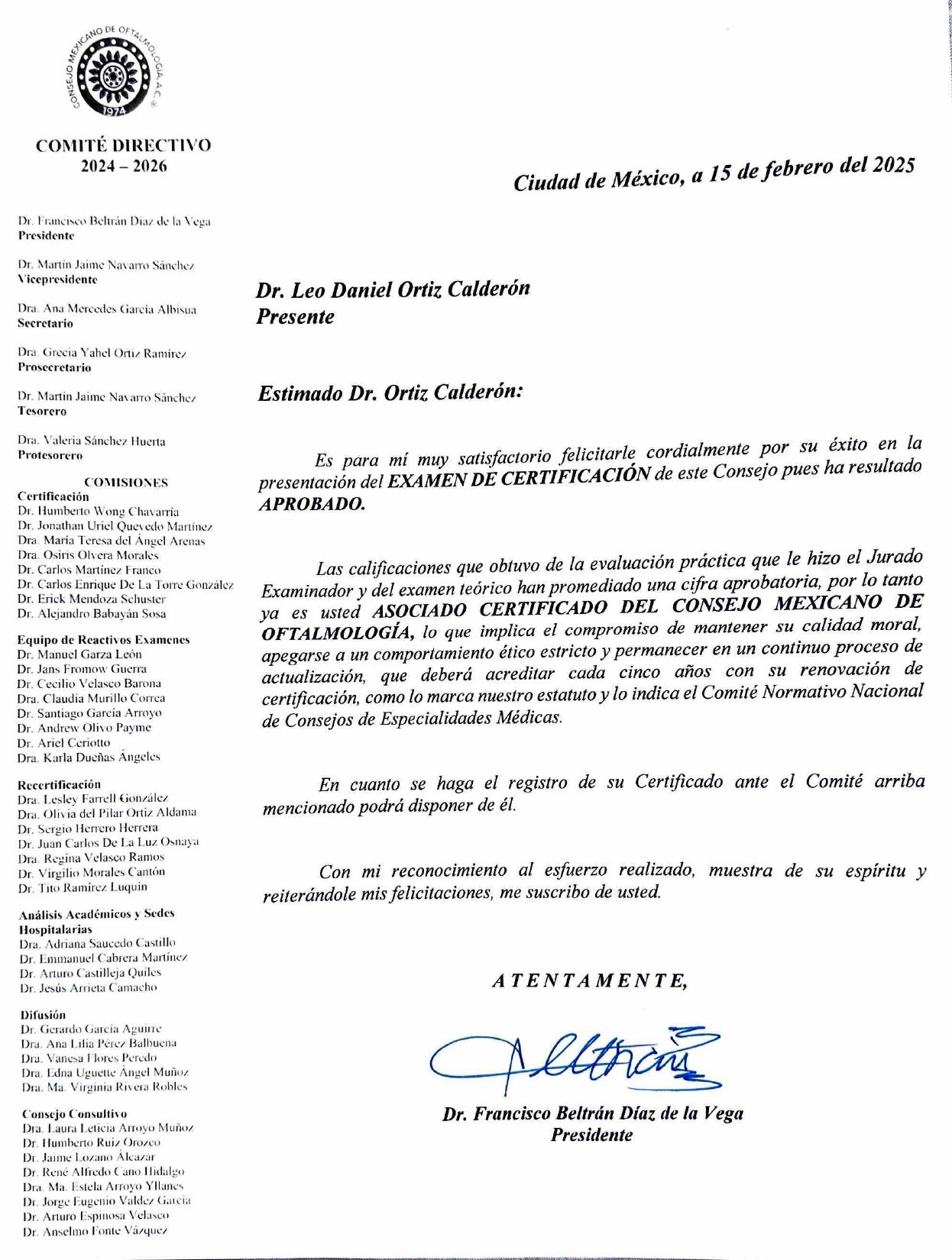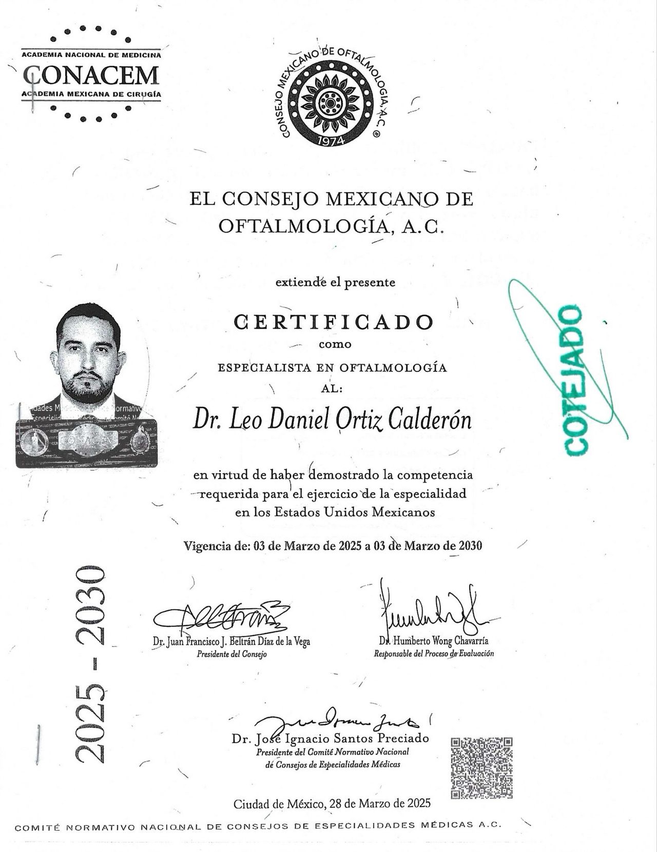 Certificado por el Consejo Mexicano de Oftalmología.