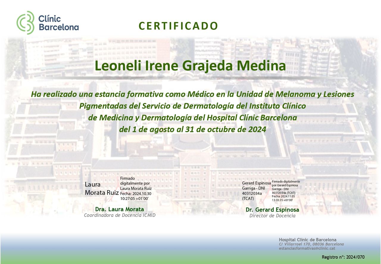 Tuve la oportunidad de realizar una Estancia Académica en la Unidad de Melanoma del Hospital Clínico de Barcelona, en donde aprendí de los maestros y con la técnología más avanzada a detectar diversas características de lunares y manchas de piel que pueden ser indicio de cáncer.