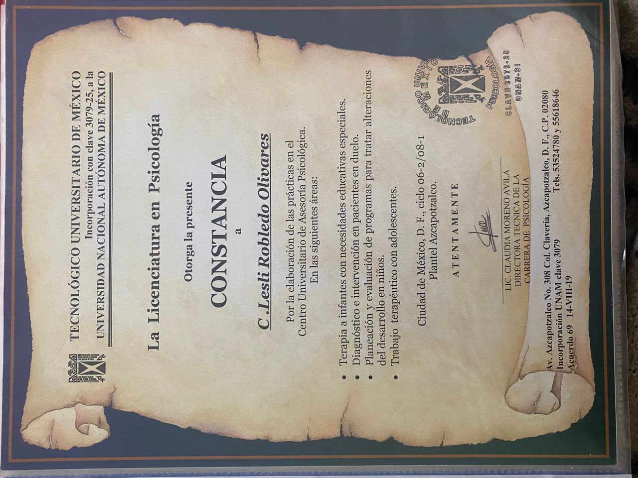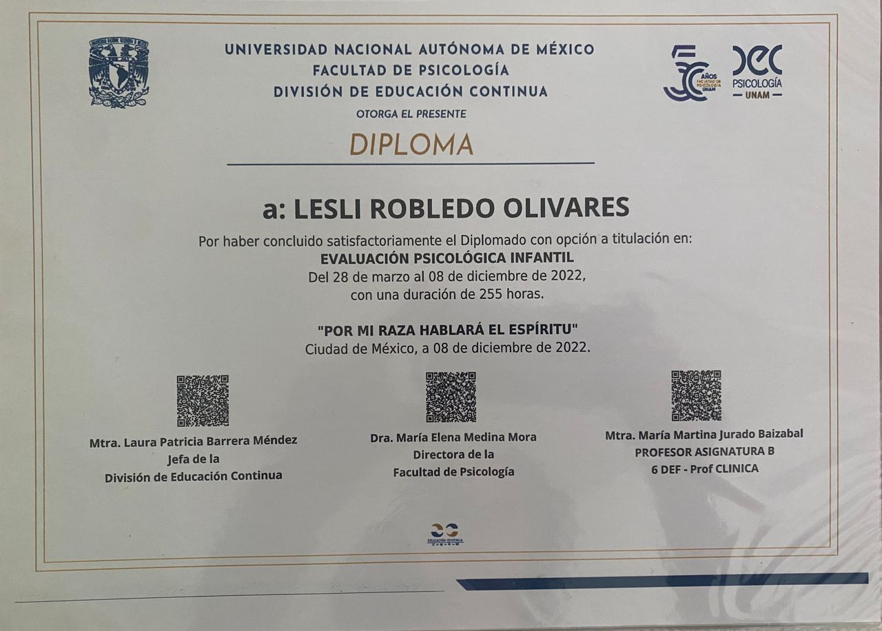 El trabajo de la Lic. Robledo es excelente, lo ocupe para mis dos hijos y yo y el resultado me encantó, nos trató muy lindo, es muy profesional y dedicada en todas las funciones que realiza... La recomiendo mucho