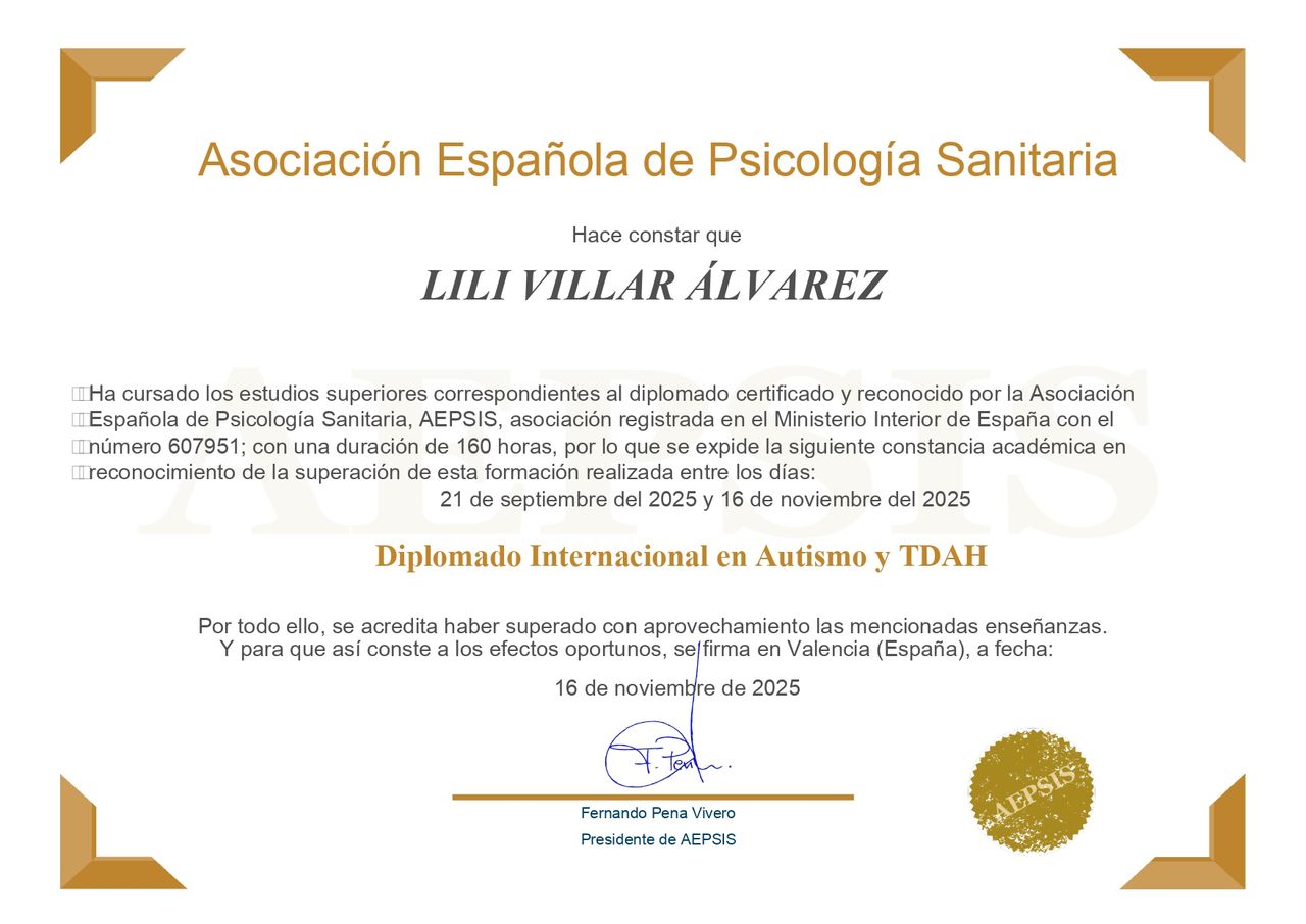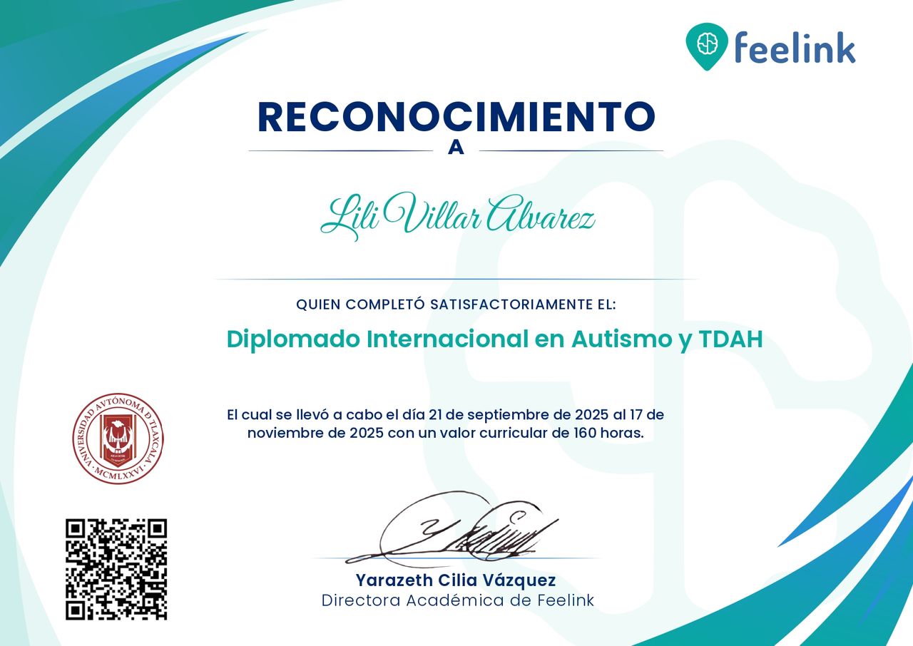 Diplomado Internacional en "Autismo y TDAH" en feelink, avalado por la Asociación Española de Psicología Sanitaria (AEPSIS) y la Universidad Autónoma de Tamaulipas.