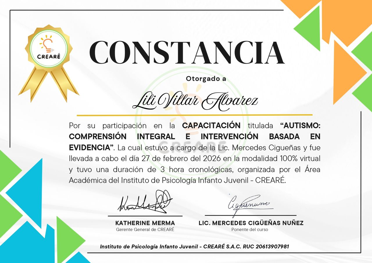 Capacitación "Autismo: Comprensión integral e intervención basada en evidencia" por el Instituto de Psicología Infanto Juvenil - Crearé.