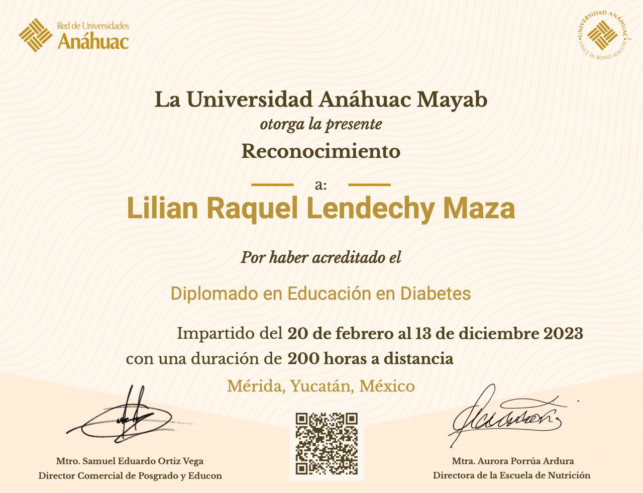 Mi sólida formación incluye un Master en Oncología por la Universidad de Barcelona, la certificación como Educadora en Diabetes y estudios en Envejecimiento Saludable. Actualmente, estoy cursando la maestría en Tratamiento de la Obesidad y Síndrome Metabólico.