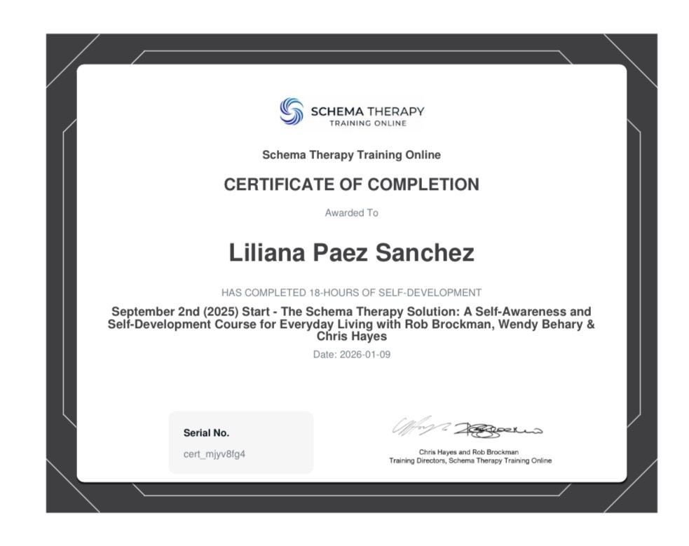 Lili es muy buena profesional me ha ayudado mucho, siento que es una persona que muestra una empatía genuina y que me dedica el tiempo necesario en terapia hasta que las cosas me queden claras, he avanzado mucho con ella y sin duda la recomiendo.