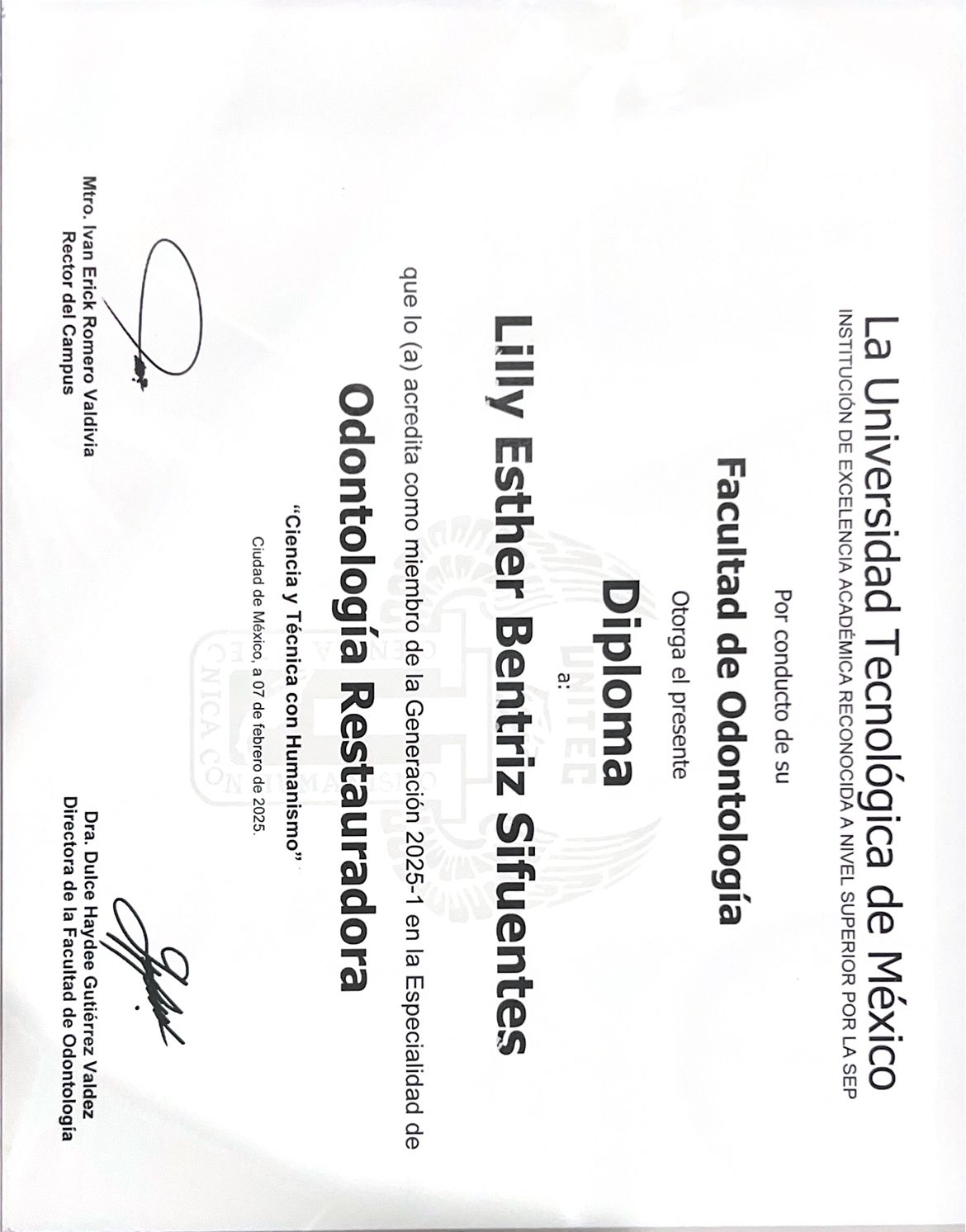 La doctora es una excelente profesional y una gran persona. Me acompañó en todo mi proceso de rehabilitación con implantes, siempre pendiente de cada detalle y resolviendo todas mis dudas con paciencia y claridad. Su dedicación y compromiso hacen que uno se sienta seguro y confiado. Estoy muy agradecido, el resultado ha sido increíble y no podría haber estado en mejores manos.