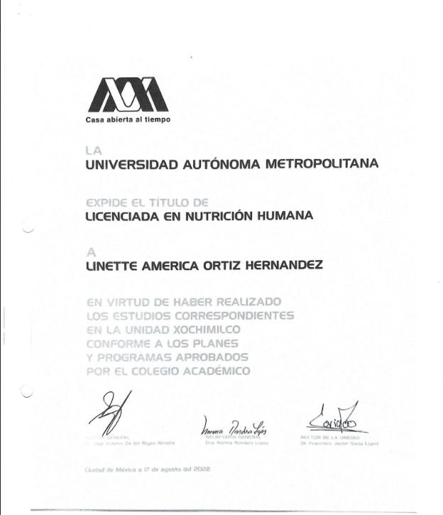 Soy Licenciada en Nutrición, egresada de la Universidad Autónoma Metropolitana, Unidad Xochimilco, institución reconocida por su enfoque integral en la formación de profesionales de la salud.