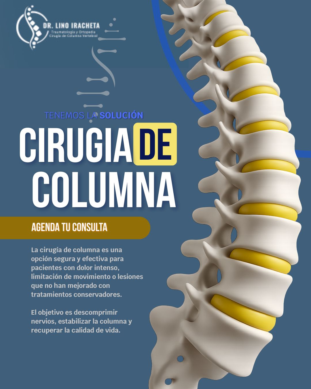 Será un placer atenderte y acompañarte en el cuidado de tu salud musculoesquelético de columna..