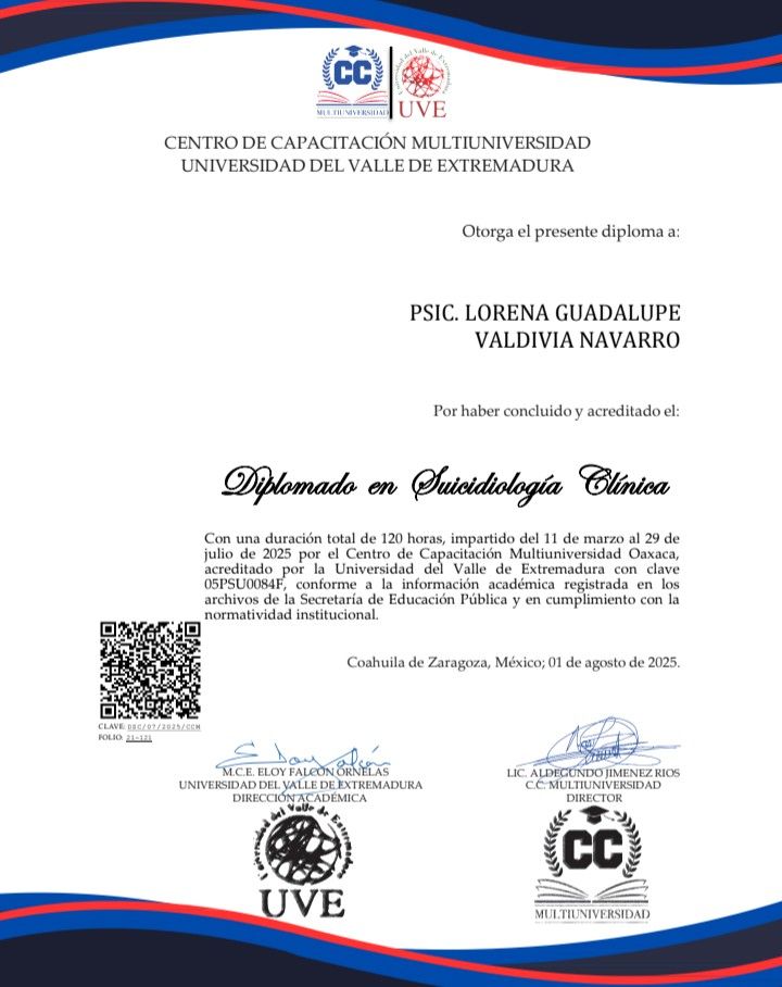 Tengo formación en tanatología e intervención en ideación suicida. Mi trabajo se centra en brindar un espacio seguro, de escucha y comprensión, donde cada persona pueda entender lo que le ocurre y encontrar recursos para afrontarlo.