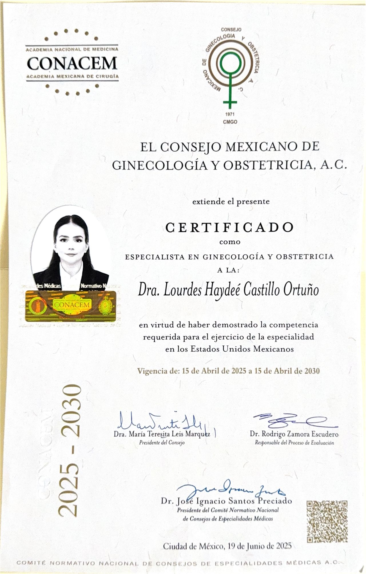 Soy la Dra. Lourdes H. Castillo Ortuño, Ginecóloga egresada de la Universidad Autónoma de Sinaloa