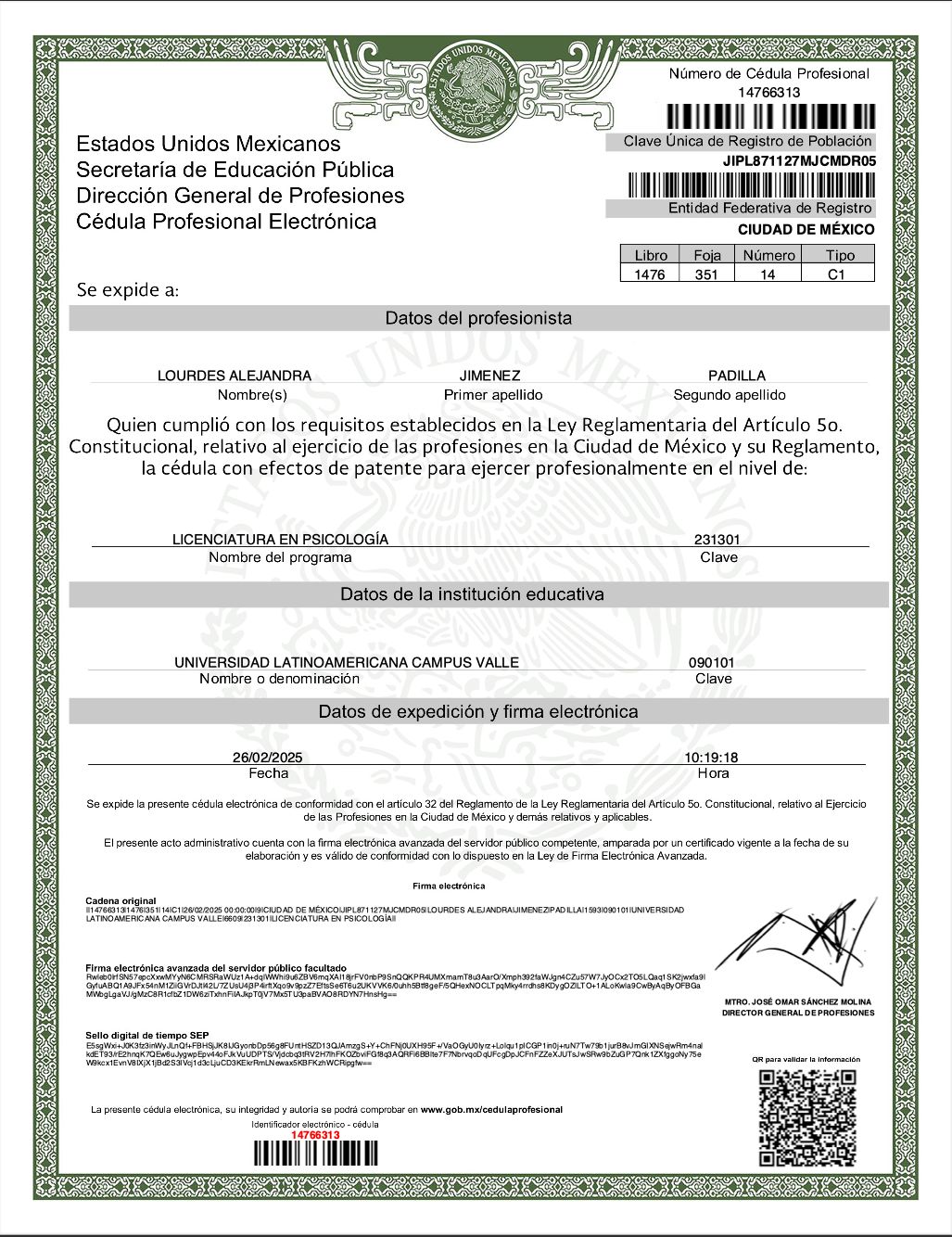Beneficiario Lourdes Alejandra Jimenez Padilla