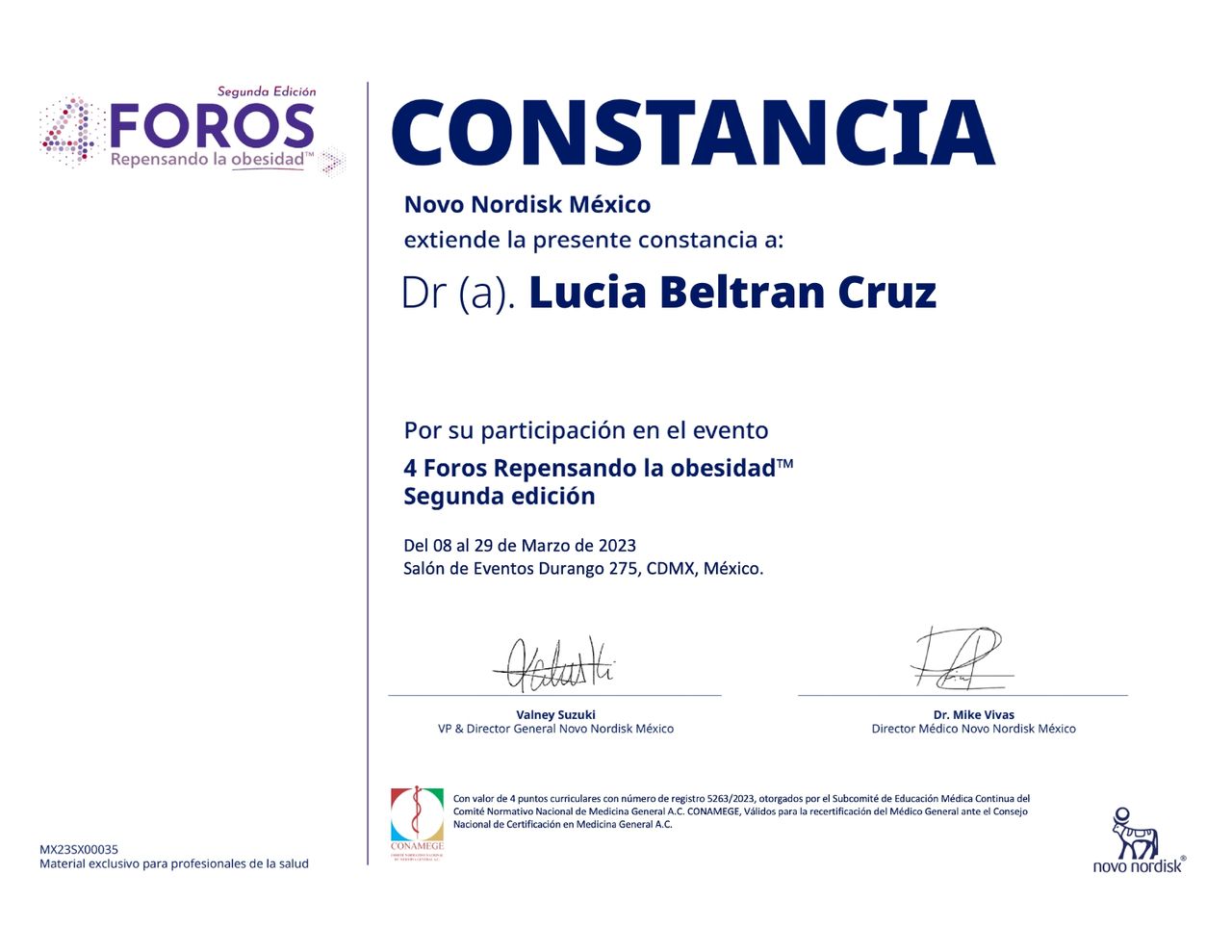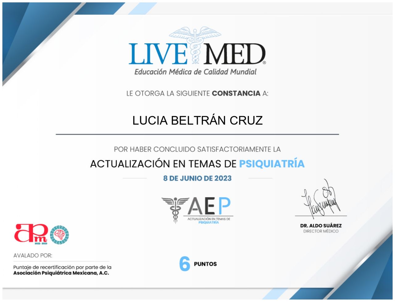 Agradezco a la doctora Lucia Beltrán el haber estudiado mi caso y llevarme por el camino del autoconocimiento.
