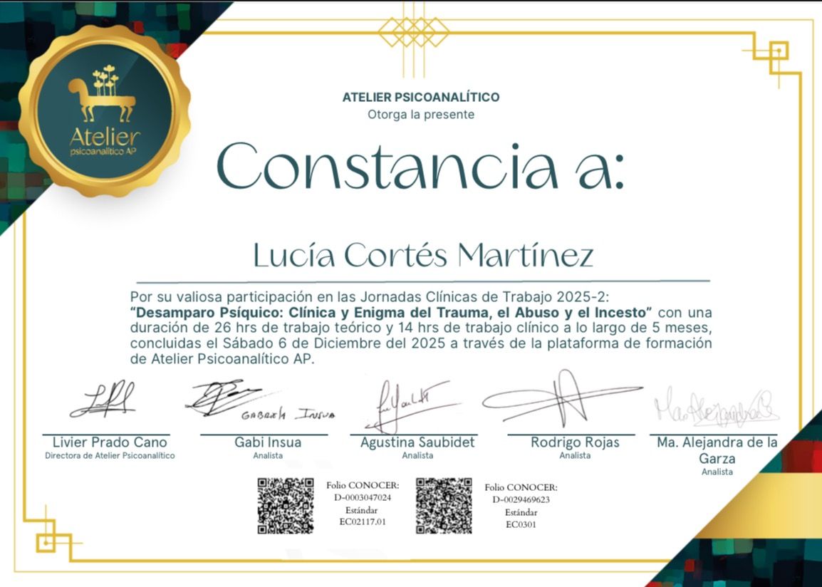 Soy psicoanalista y trabajo con adolescentes y adultos. Ofrezco un espacio de escucha y acompañamiento donde cada persona puede hablar de aquello que le causa malestar o dificultad.