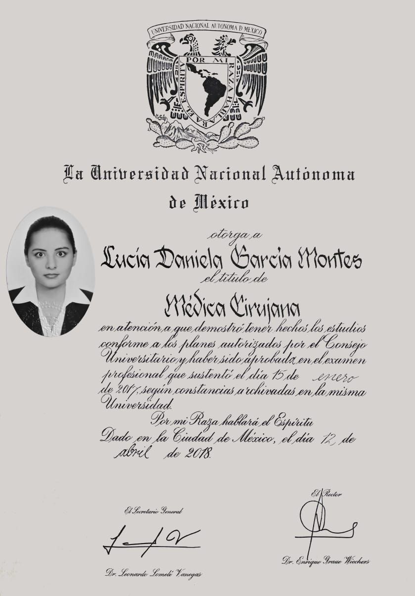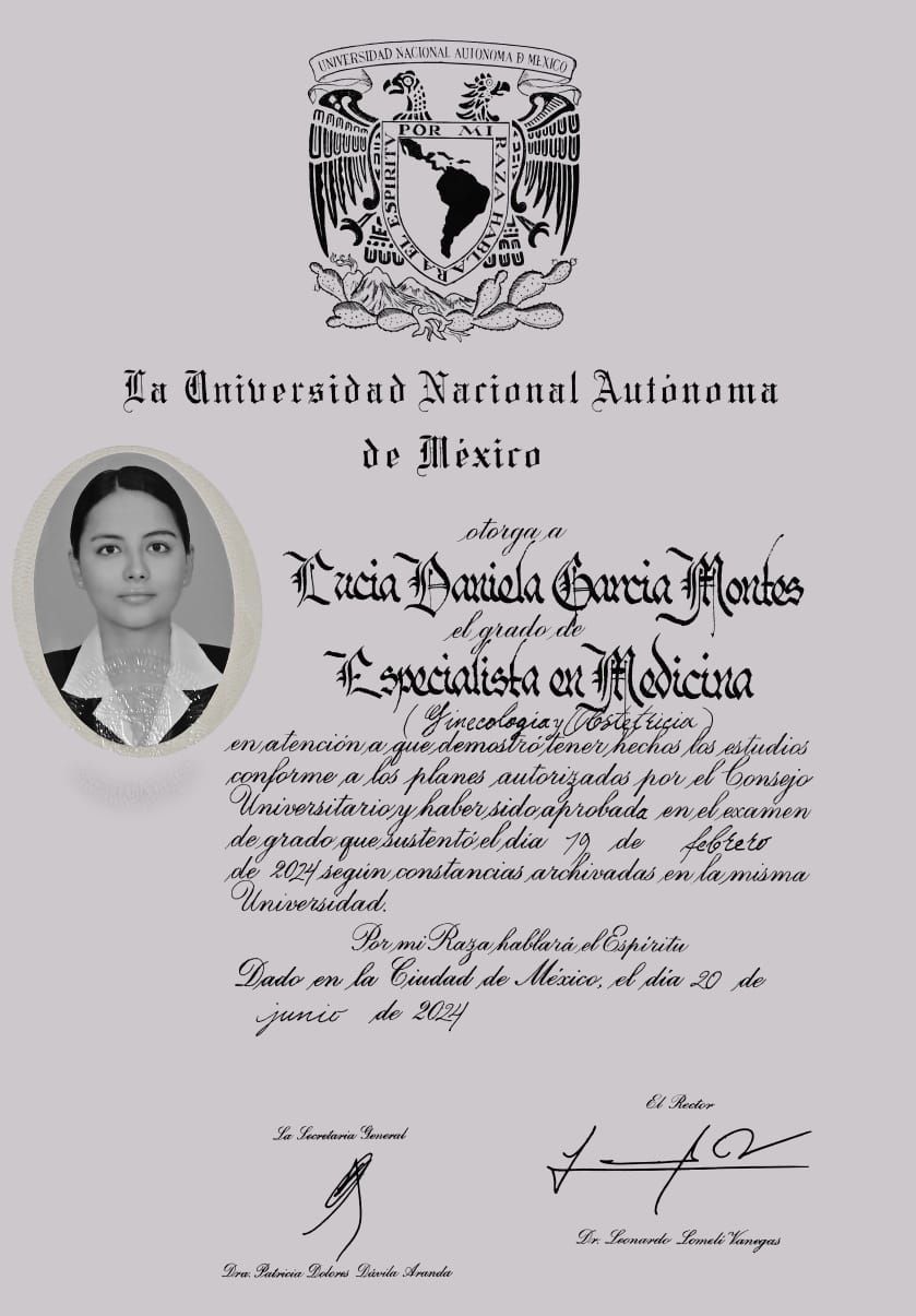 Soy la Dra. Lucia García, egresada de la Unidad Médica de Alta Especialidad (UMAE) Hospital de Gineco Obstetricia No. 3, del Centro Médico Nacional La Raza. Mi enfoque consiste en cuidar a mis pacientes en todas sus etapas de la vida desde la perspectiva medica y humana, considerando factores tanto fisiológicos como sociales y emocionales que pueden estar desempeñando un papel relevante en la salud reproductiva; cabe señalar, que es un placer el poder acompañar a mis pacientes en el proceso de dar vida y presenciar el nacimiento de lo más importante para nosotras. Adicionalmente, me apasiona la busqueda de la verdad por lo que cuento con Maestría en Ciencias Médicas, Odontológicas y de la Salud, así como, publicaciones y premios a nivel nacional e internacional.