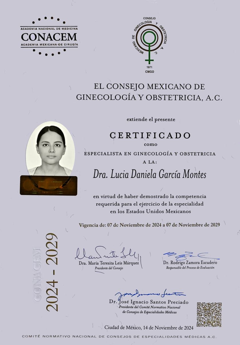 N° Certificado por el CONSEJO MEXICANO DE GINECOLOGÍA Y OBSTETRICIA, A.C.: 14868