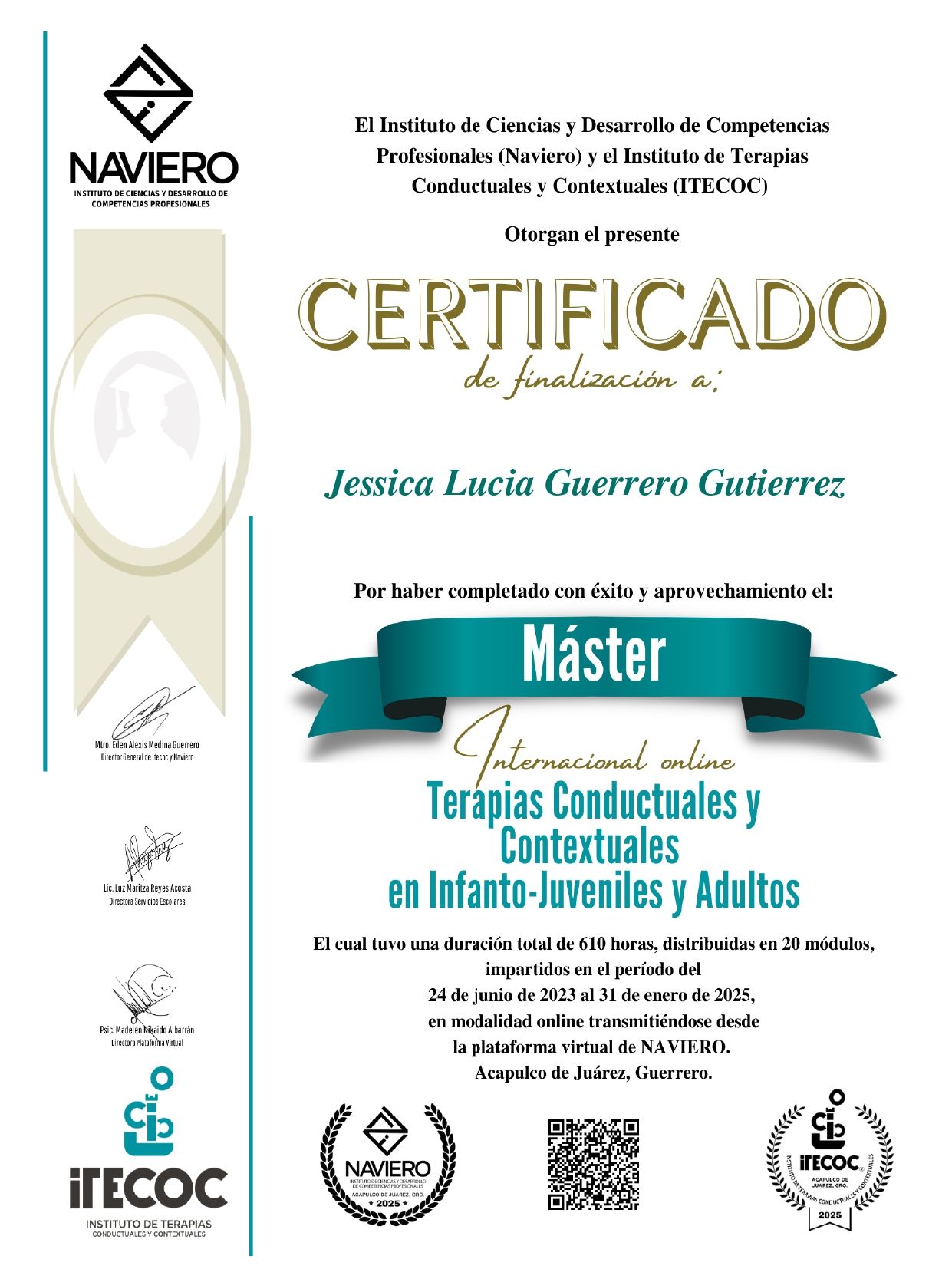 Soy la Mtra. Lucía Guerrero, psicóloga con una Maestría en Psicología de la Salud por la Universidad de Guadalajara y un Máster en Terapias Conductuales y Contextuales por ITECOC. Acompaño a adultos que atraviesan momentos de ansiedad, depresión, estrés, duelos, traumas, dependencia emocional y procesos relacionados con la salud, tanto en pacientes como en cuidadores.