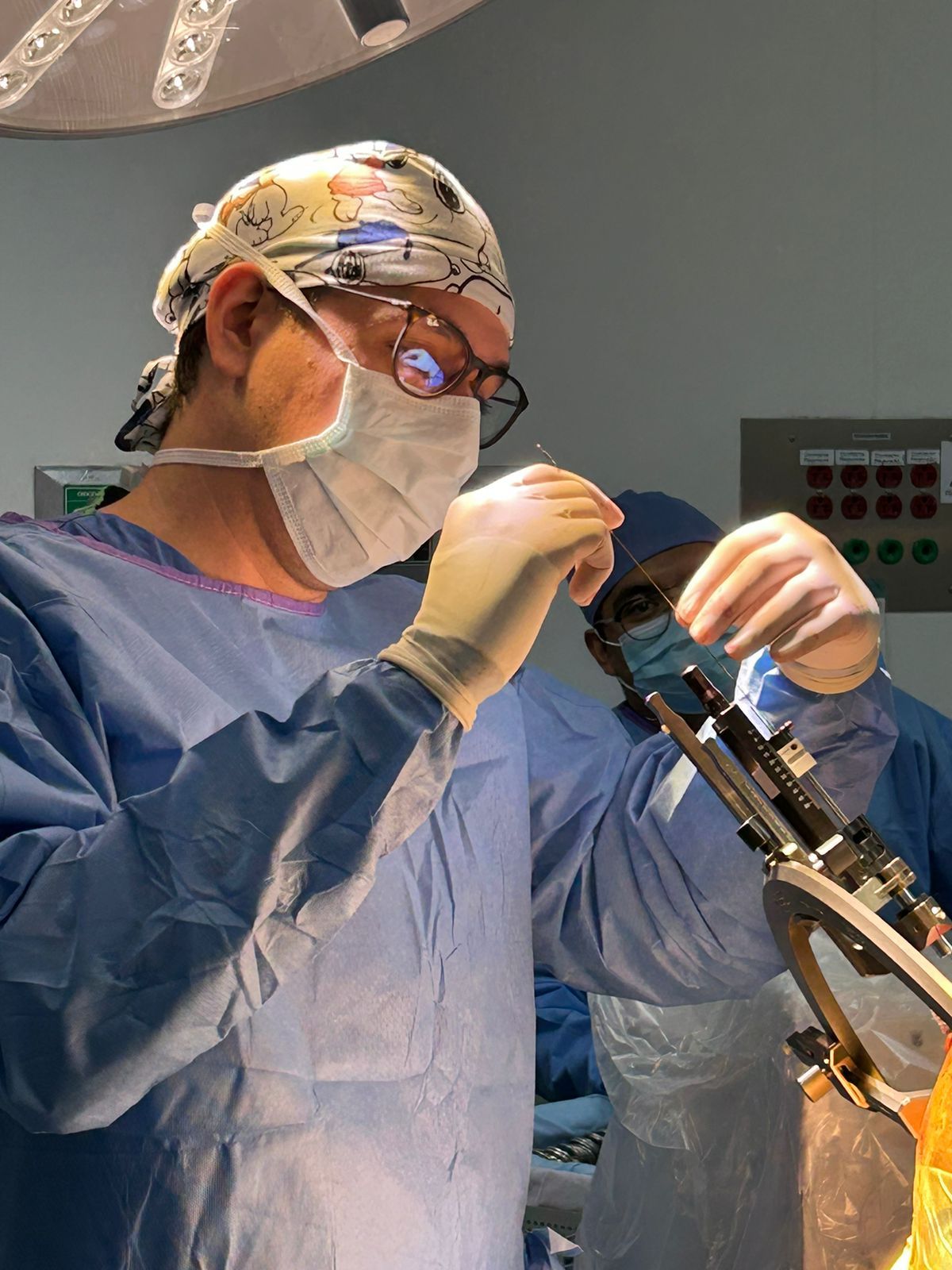 Realizo procedimientos como estimulación cerebral profunda (DBS), biopsias estereotáxicas y cirugía con paciente despierto para tumores cerebrales.