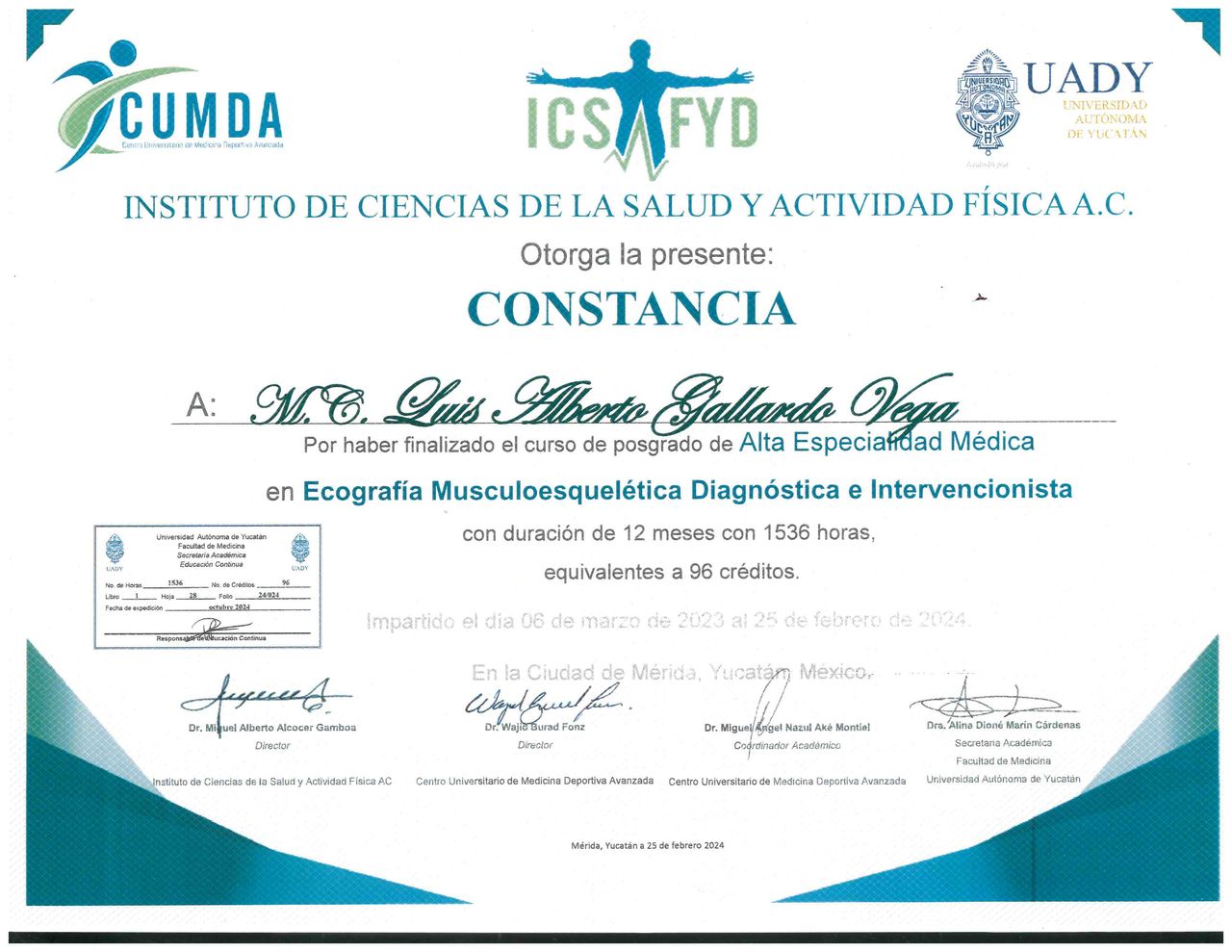 El entrenamiento de la Alta Especialidad es para realizar tratamientos minimamente invasivos, guiados por ultrasonido, con medicina regenerativa (Células Madre, Plasma Rico en Plaquetas - PRP, Proloterapia), indicados en lesiones de músculos, ligamentos, tendones y cartílago (desgaste articular).