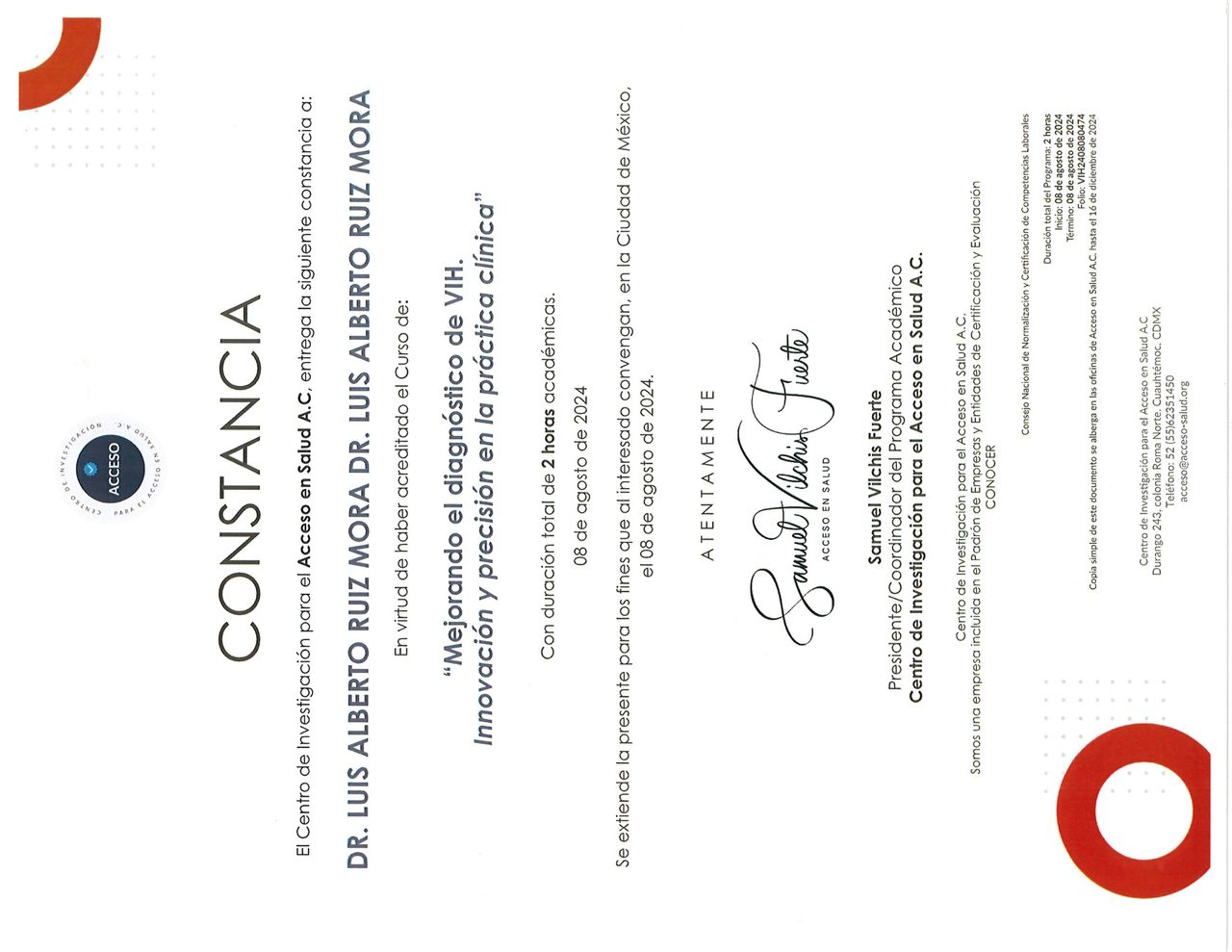 Muy recomendado. Soy parte de la comunidad LGBT y tengo 7 años atendiéndome con el Dr. Luis Ruiz. Estoy muy agradecido por su acompañamiento, profesionalismo y humanidad. Es un doctor muy actualizado en temas de VIH y con mucha experiencia. Su trato siempre ha sido respetuoso y confidencial, generando gran confianza en mí y en mi pareja. La privacidad y el respeto con el que maneja cada consulta nos han hecho sentir muy cómodos.