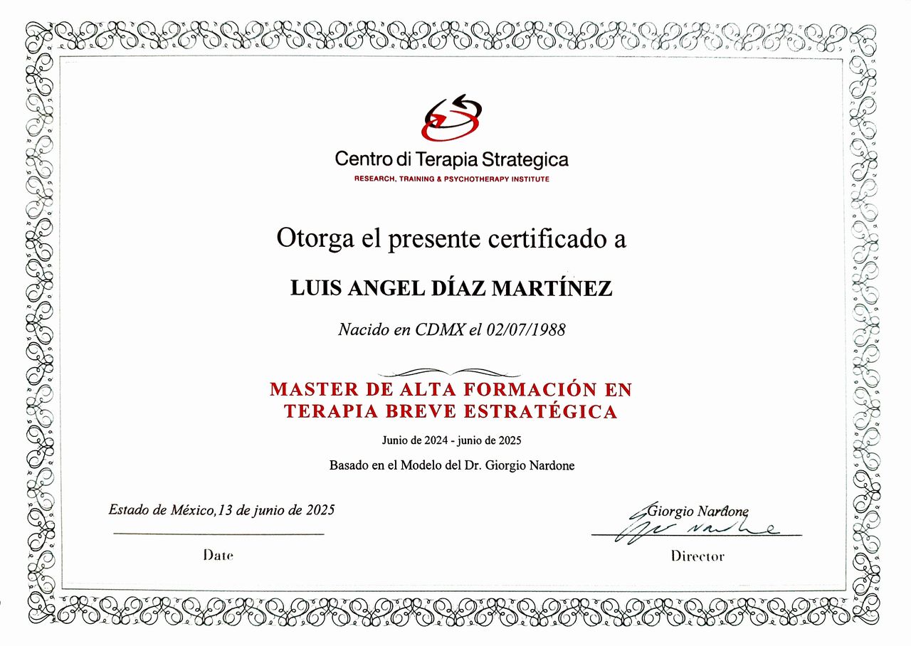 Cuento con más de quince años de experiencia clínica y trabajo con Terapia Breve Estratégica, un modelo de psicoterapia desarrollado en Italia por el Dr. Giorgio Nardone, a través del cual: 1) las consultas son entrevistas muy estructuradas que permiten focalizar el problema y los recursos disponibles en las situaciones de vida que son importantes para el consultante, 2) en cada consulta se construyen actividades o tareas a realizar en la vida diaria para generar cambios progresivos y observables a corto plazo, y 3) la mayoría de los problemas y trastornos se resuelven en menos de diez consultas EN LA MEDIDA en que el consultante sigue las indicaciones acordadas.