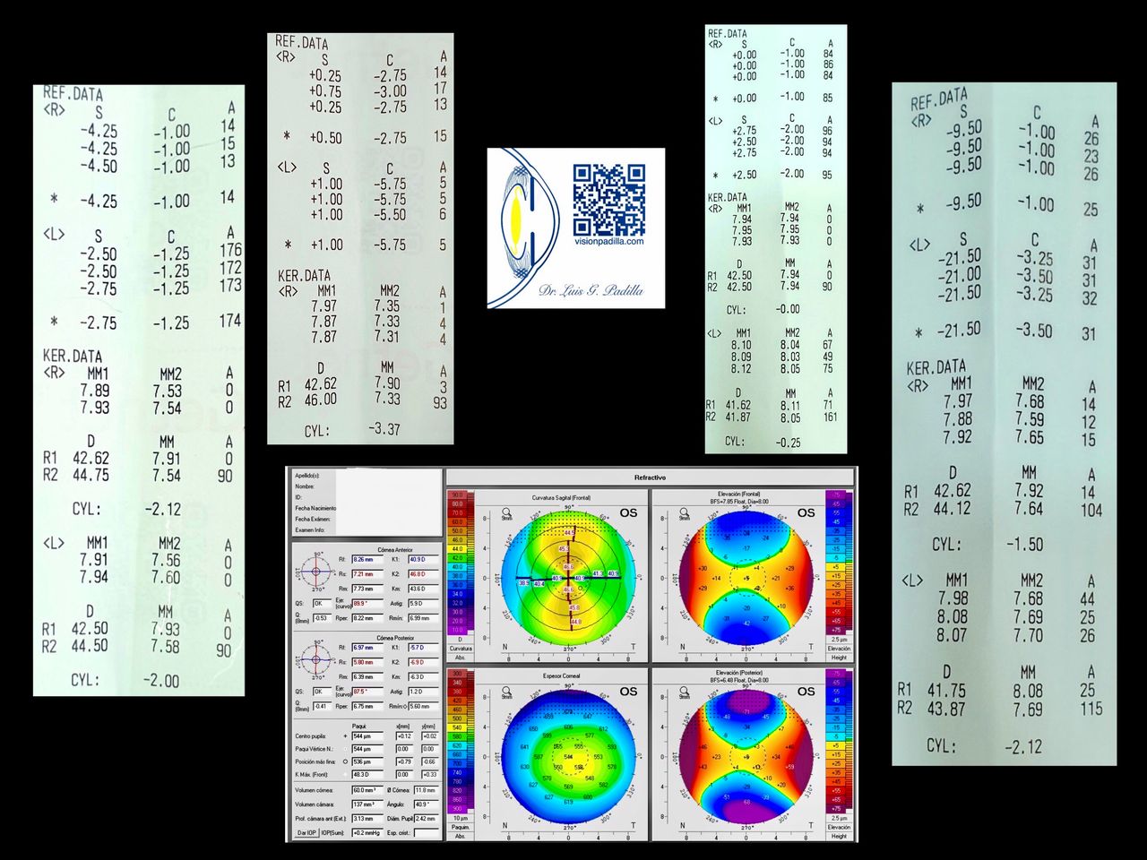En la imagen puedes ver distintos estudios reales: autorefracciones, queratometrías y topografia corneal.