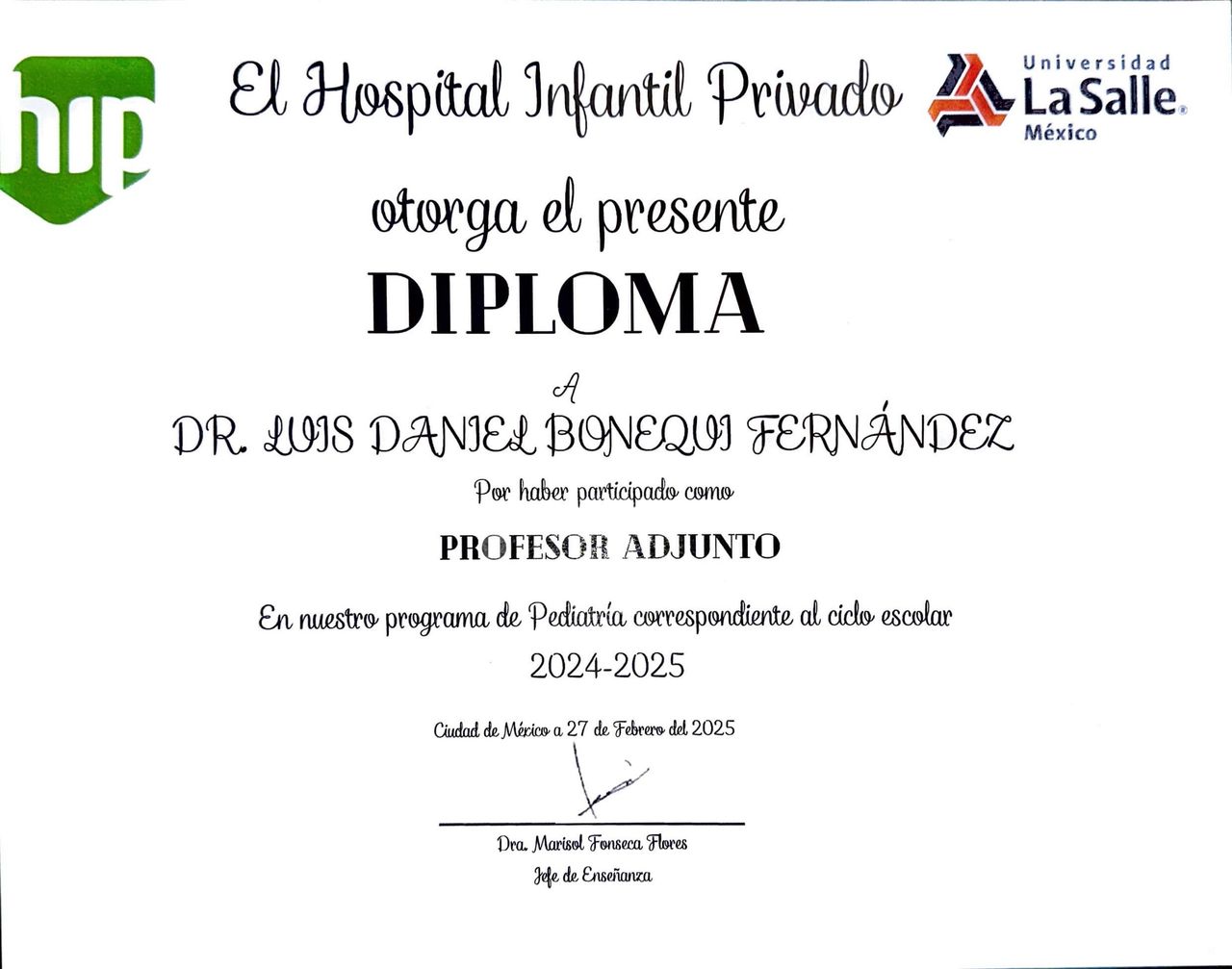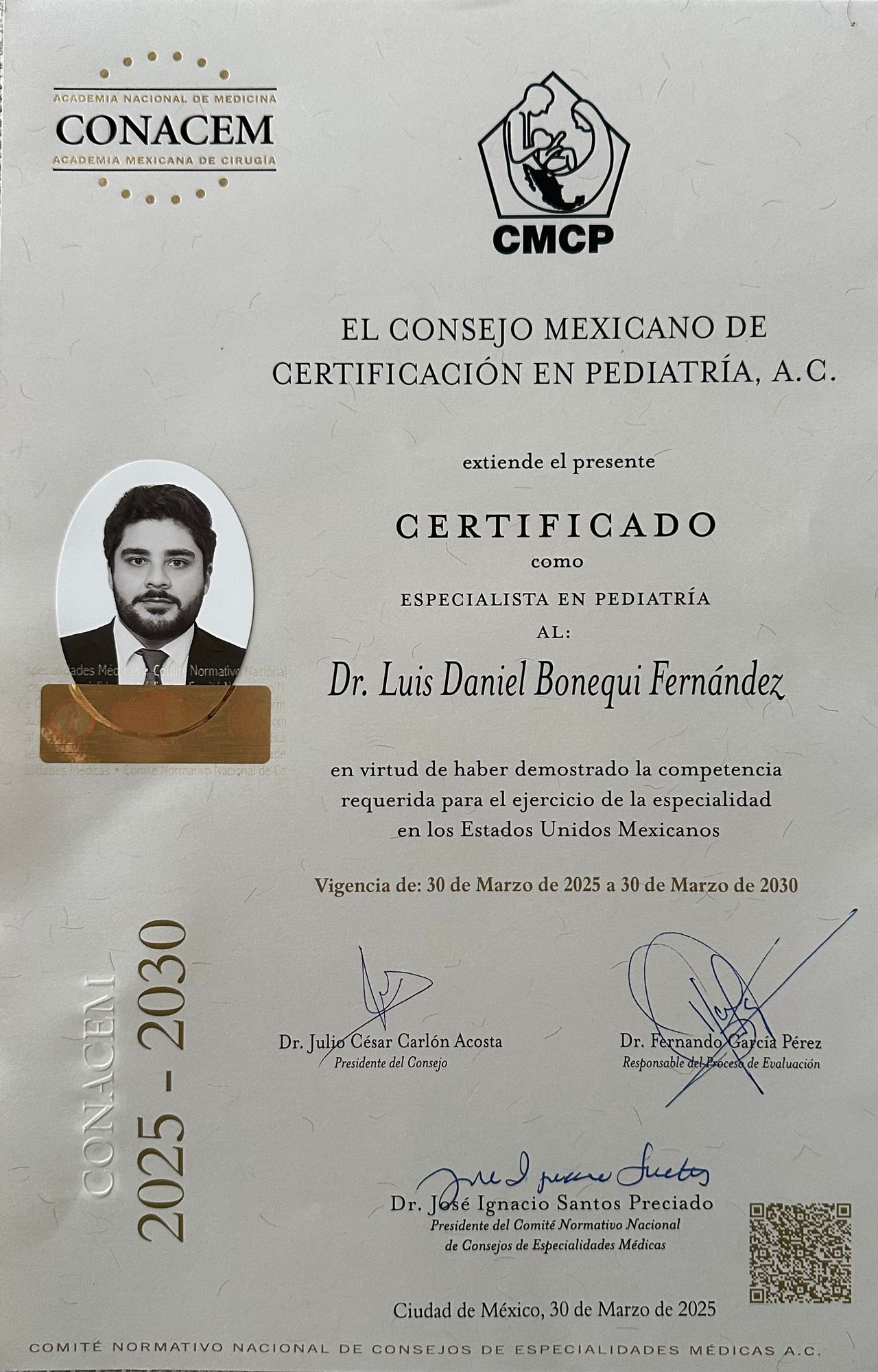 •Certificado por el Consejo Méxicano de Pediatría (2025- 2030)