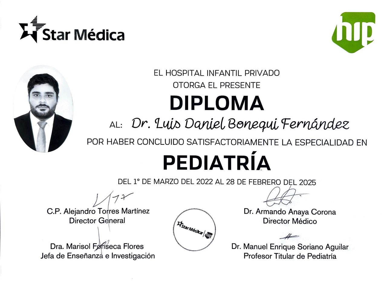 •Especialista en Pediatría por la UNAM - Hospital Infantil Privado