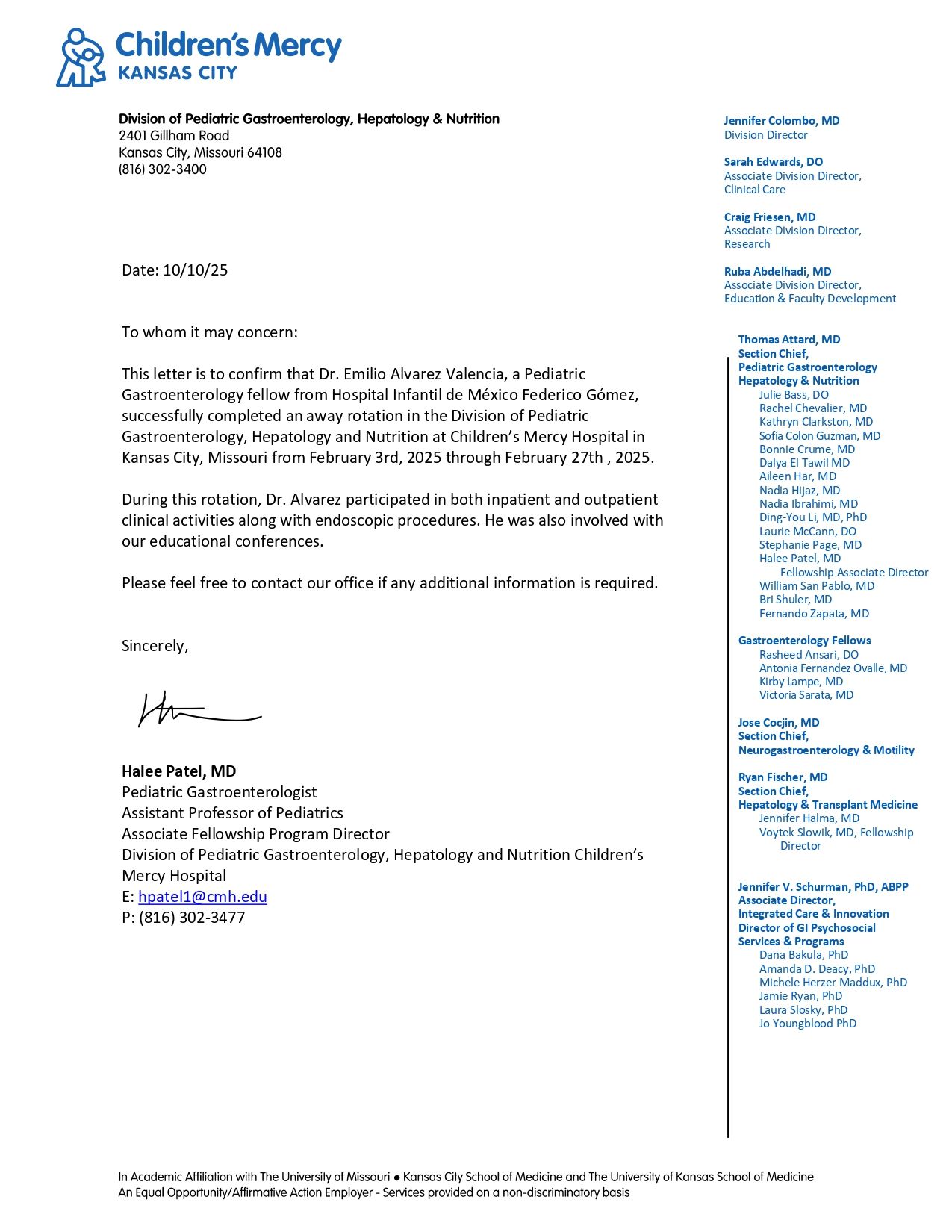 Cuento además con entrenamiento en la Unidad de Gastroenterología del Children’s Mercy Hospital en Kansas City, Missouri, una de las instituciones pediátricas más reconocidas en Estados Unidos.