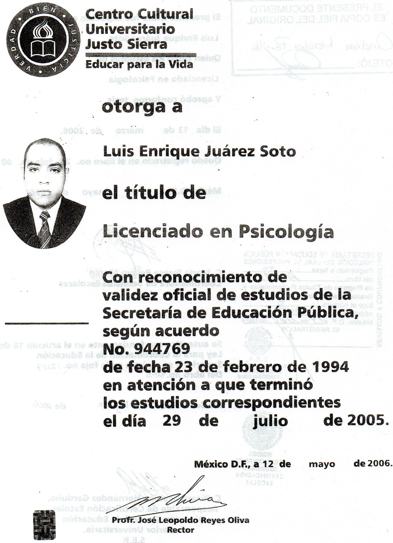Psicólogo clínico con formación en psicoanálisis, amplia experiencia en atención psicológica con adolescentes y adultos, trastornos de la personalidad, neurosis, trastornos de ansiedad y depresión. Aplicación e interpretación de pruebas y baterias psicométricas, orientación vocacional y psicoterapia de duelo.