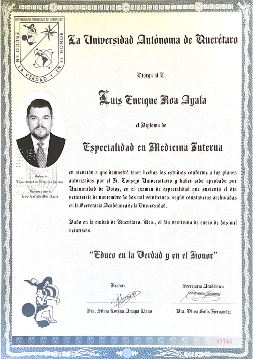Resumen Profesional – Dr. Luis Enrique Roa Ayala, Médico Internista