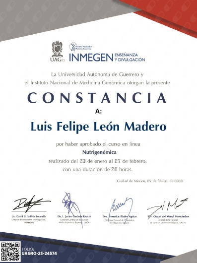 Me gradué con Mención Especial de la carrera de Médico-Cirujano en la Universidad Autónoma de Campeche, y con Mención Honorífica de la especialidad de Genética Médica en el Hospital General de México Dr. Eduardo Liceaga.