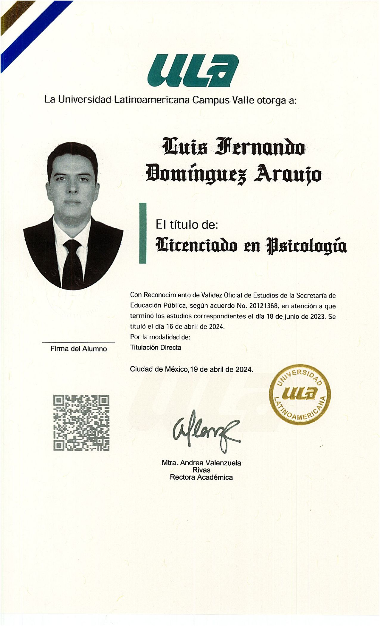 Soy Licenciado en Psicología, Maestro en Psicología Humanista y Psicoterapeuta Certificado bajo los enfoques: psicocorporal, reconstrucción experiencial y diálogo protegido.