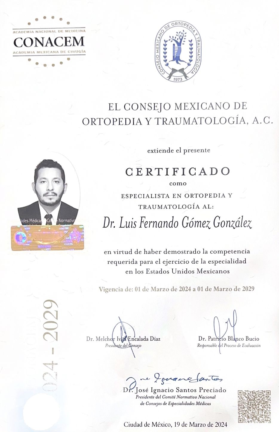 Alta Especialidad en Cirugía de Pie y Tobillo Egresado del Instituto Nacional de Rehabilitación, CDMX/Barcelona, España.